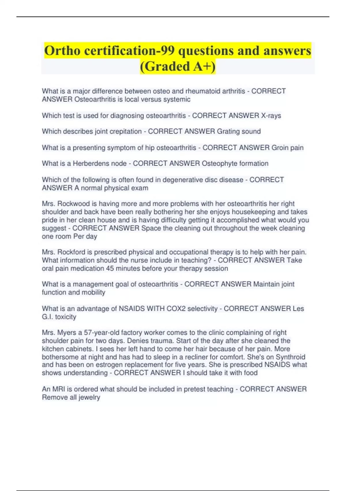 Orthopedic Certification Test with Complete Solutions