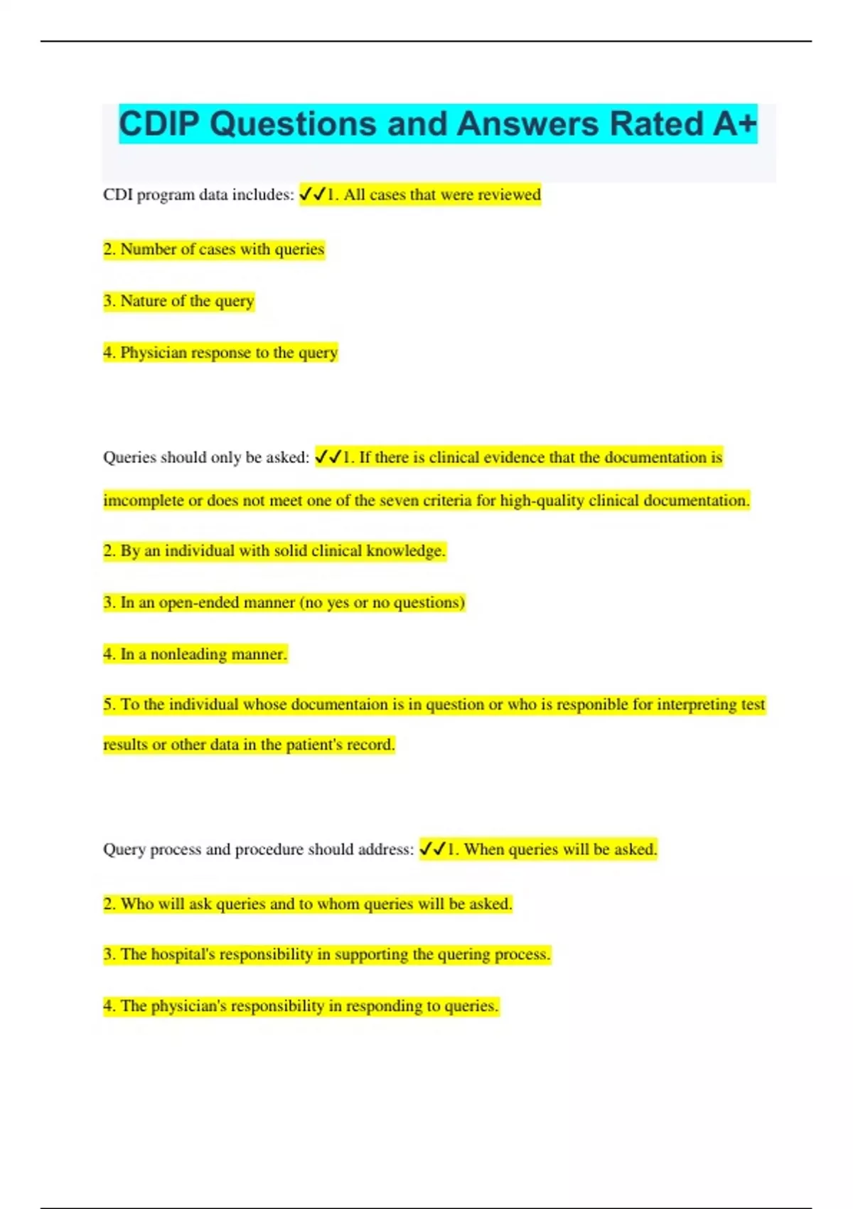 CDIP Domain 1: Clinical Coding Practice Already Graded A