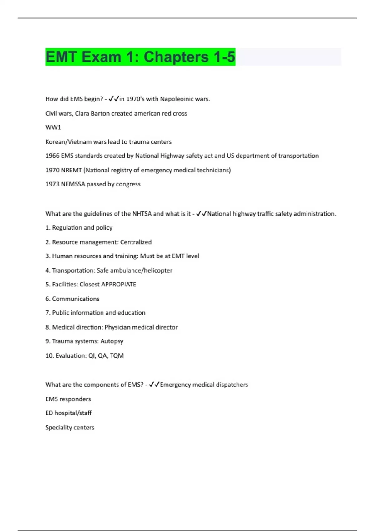EMT Exam Chapters 1-10| Questions with 100% Correct Answers | Verified