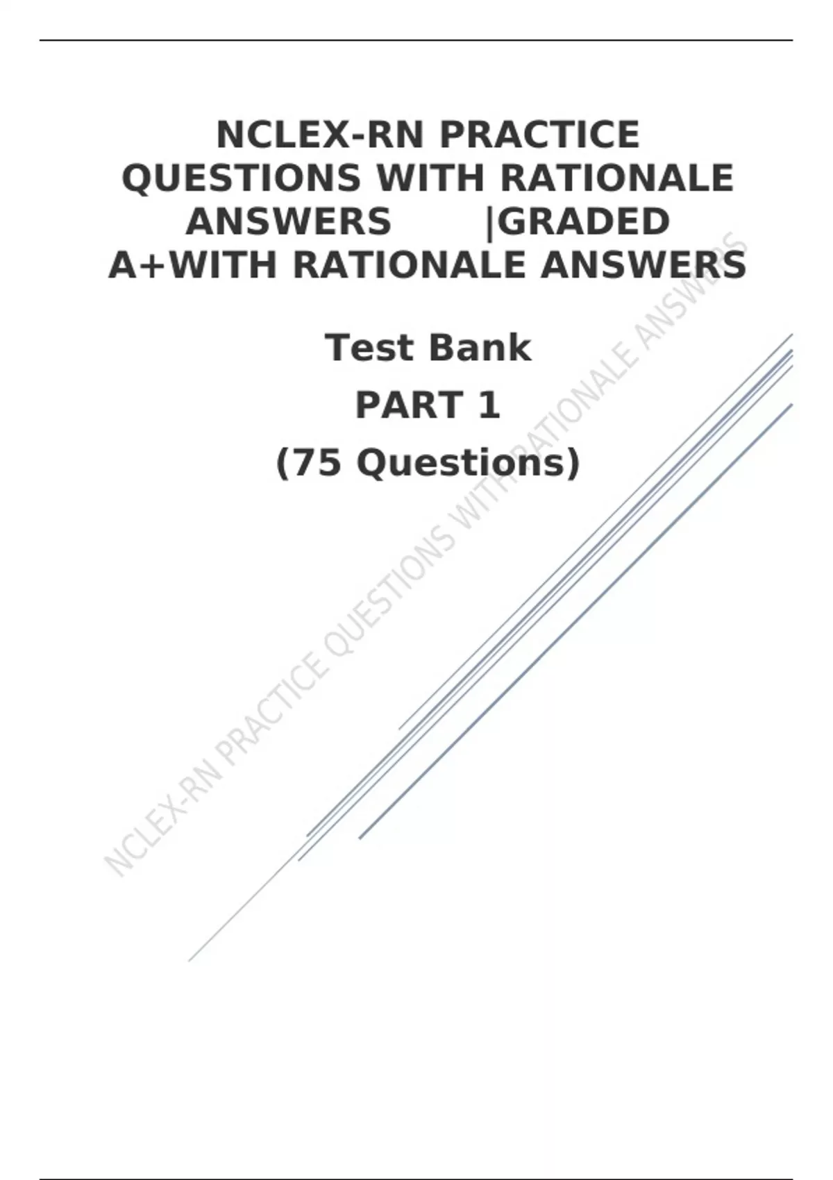 NCLEX-RN PRACTICE QUESTIONS WITH RATIONALE ANSWERS |GRADED A+WITH RATIONALE ANSWERS Test Bank PART 1 (75 Questions)