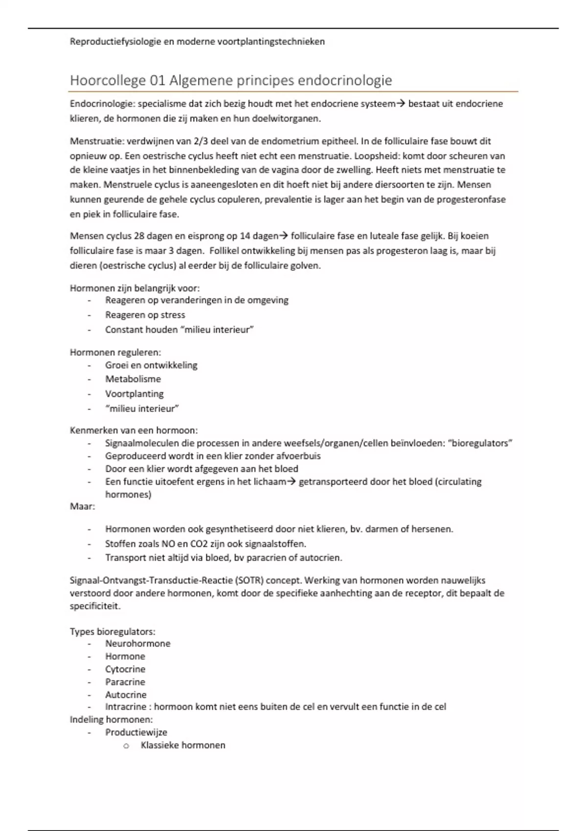 Samenvatting geïntegreerde reproductiefysiologie, HC/WC/PR/WCO