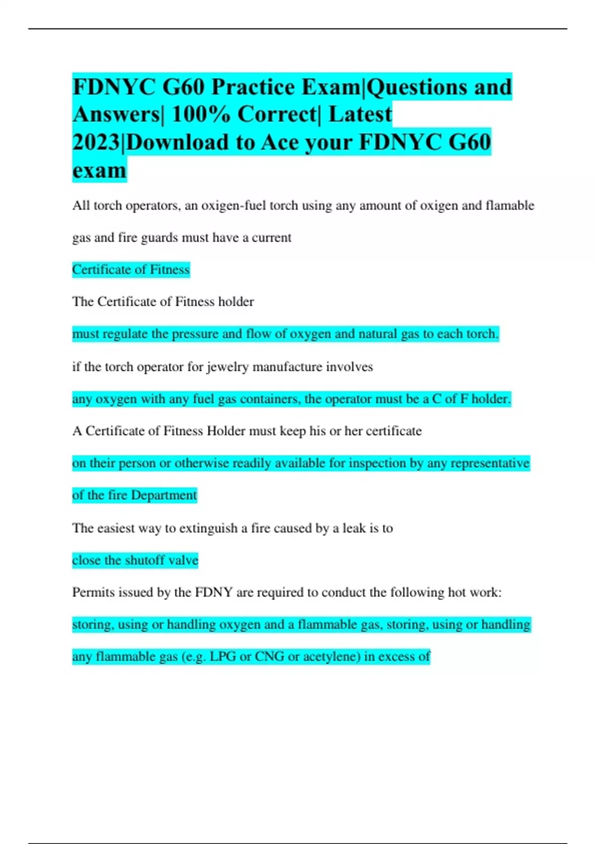 FDNYC G60 Practice Exam|Questions and Answers| 100% Correct| Latest 2023|Download to Ace your FDNYC G60 exam