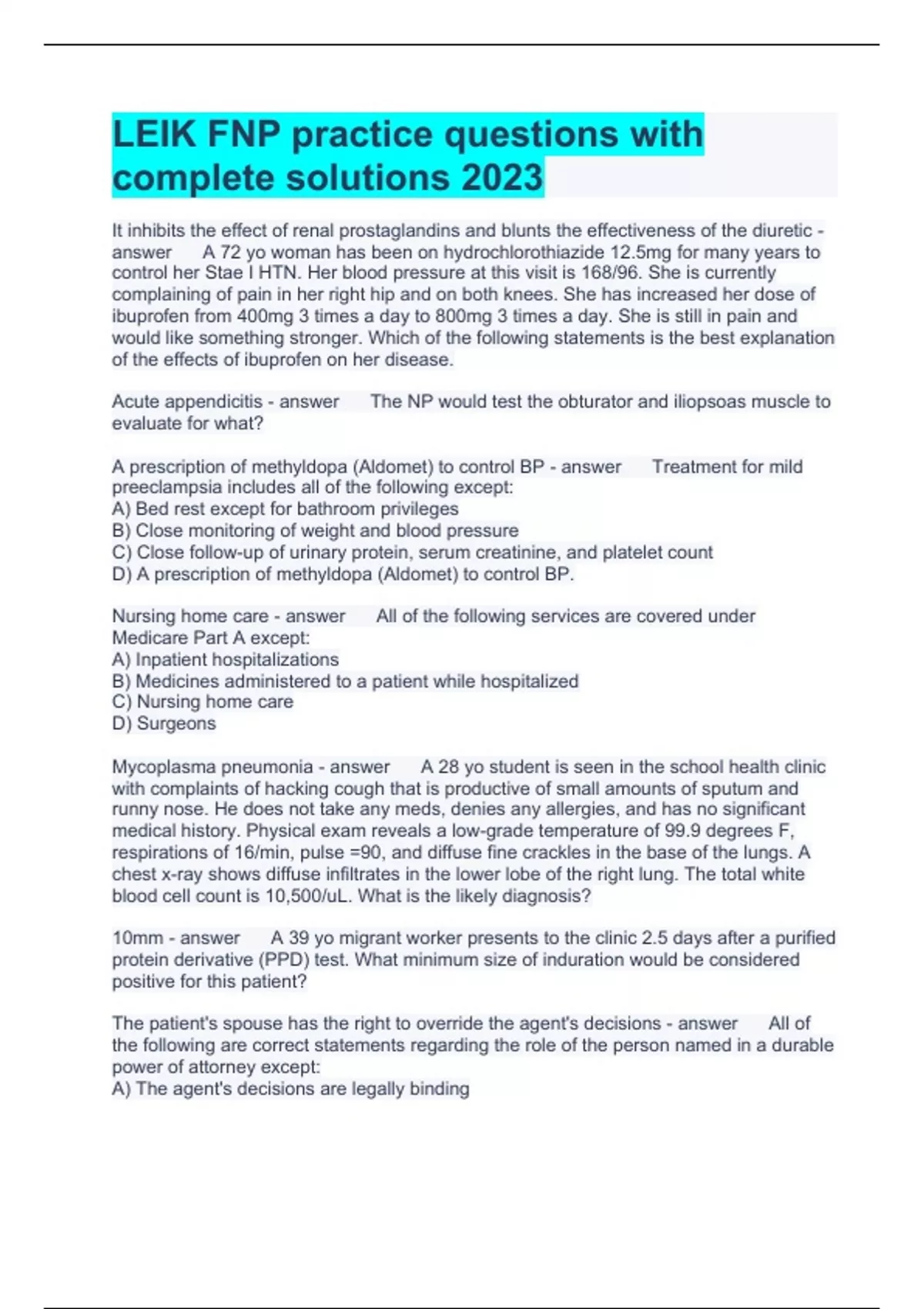 LEIK FNP TEST EXAM COMPILATION BUNDLE 2023