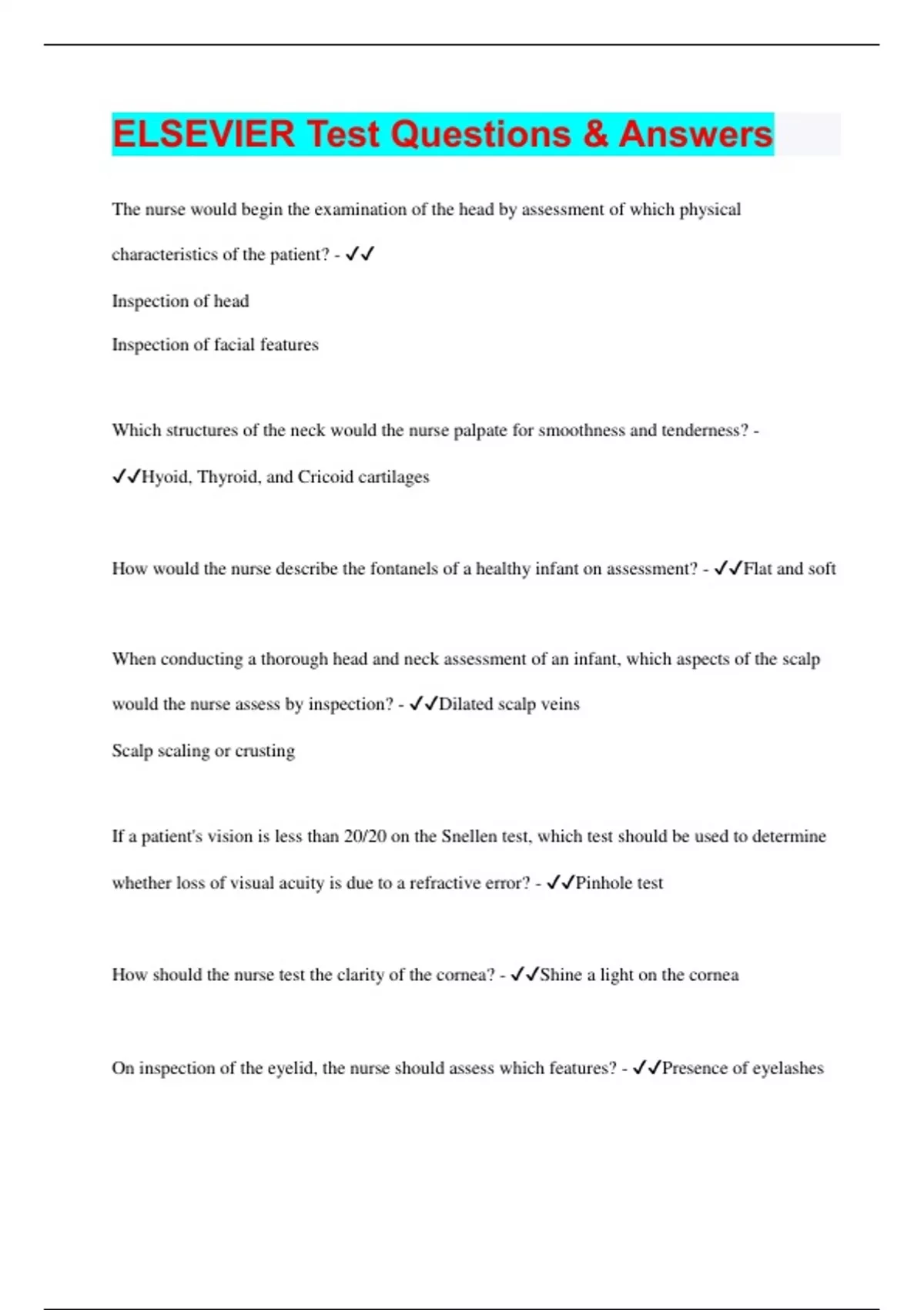 ELSEVIER Test Questions & Answers | Questions with 100% Correct Answers | Updated & Verified