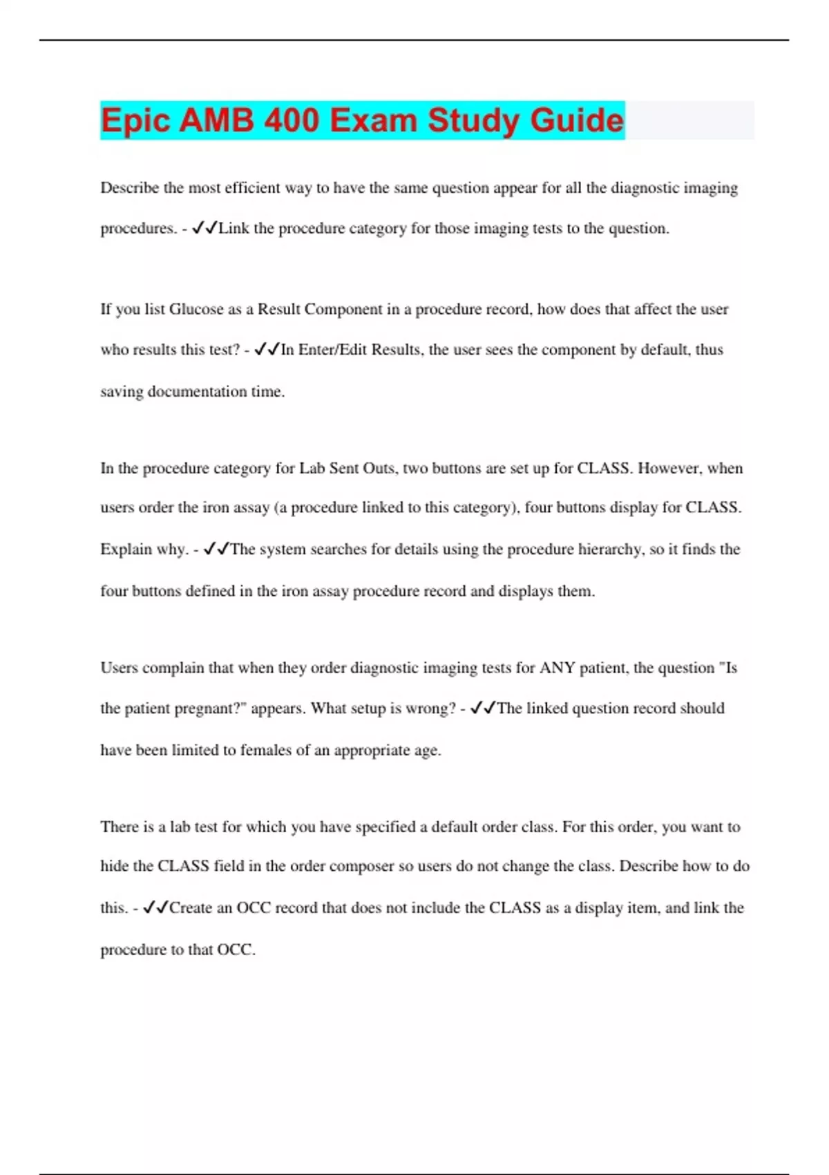 Epic AMB 400 Exam Study Guide | 235 Questions with 100% Correct Answers | Verified | 32 Pages