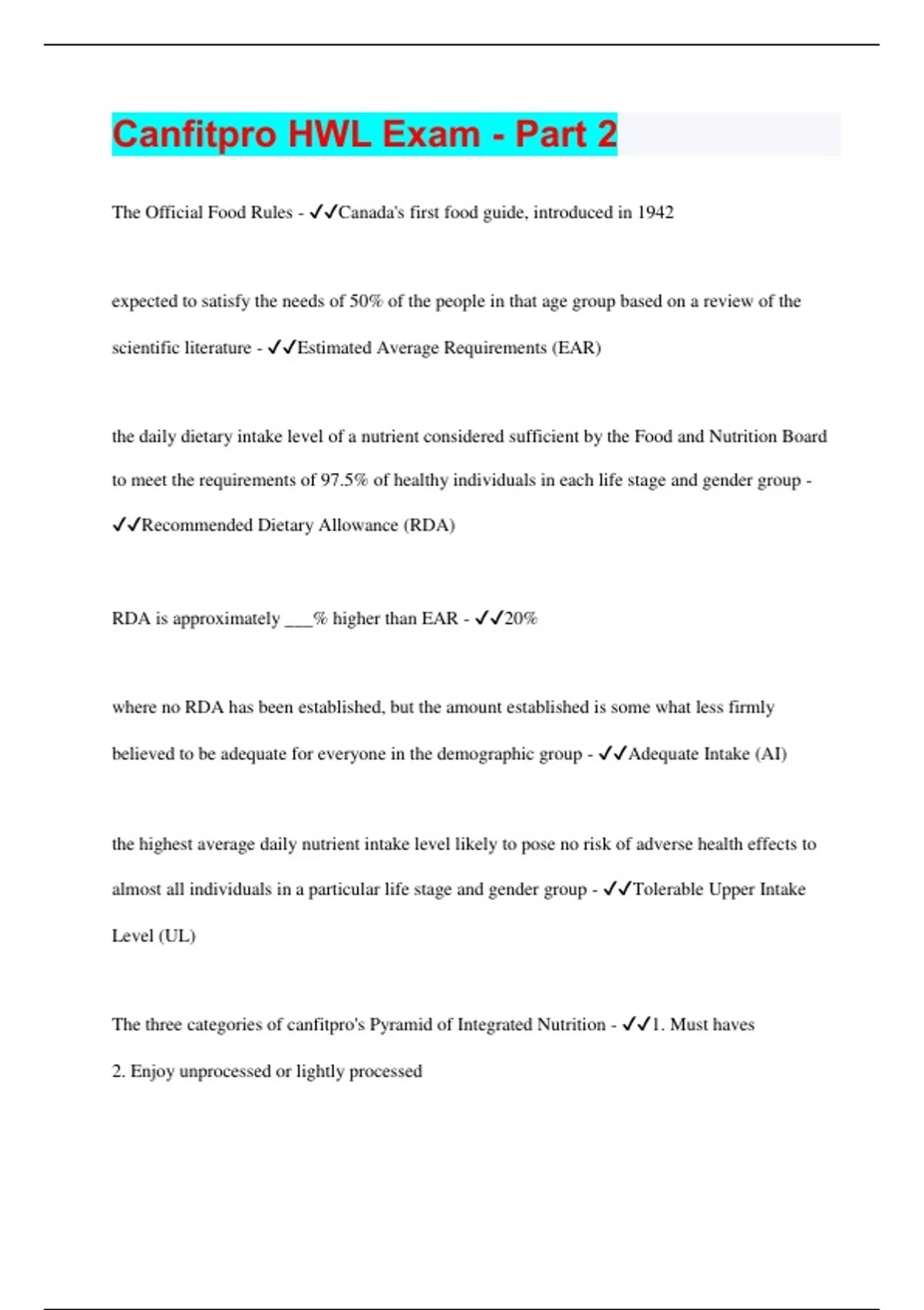 Canfitpro HWL Exam - Part 2 | 140 Questions with 100% Correct Answers | Verified | 22 Pages