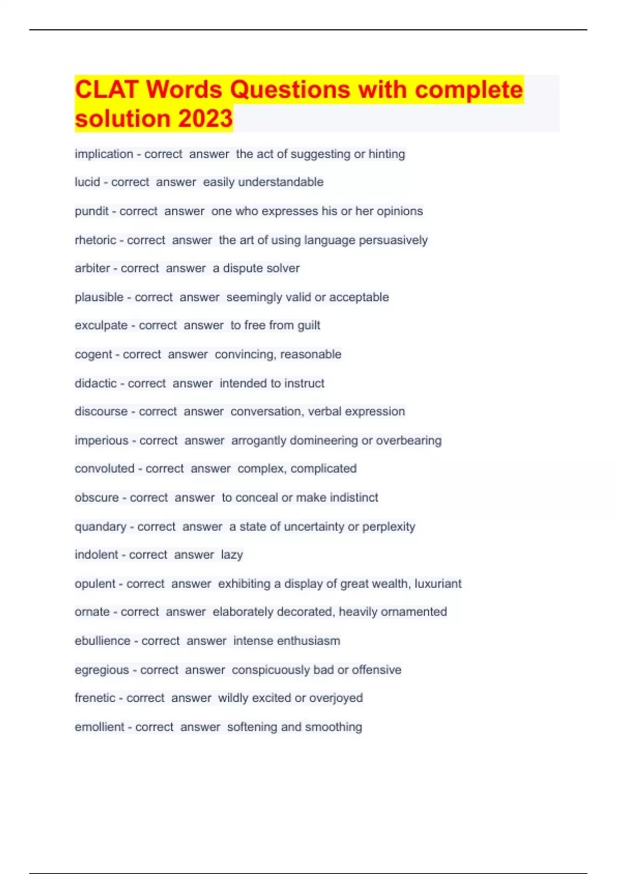 Relationships Questions with complete solutions 2023 Exam (elaborations) Unit 4 test Question and answer 2023 verified Exam (elaborations) groundwater and erosion Question and answer already passed 2023 Exam (elaborations) COMM 142 POWER (midterm) Question and answer 100% solved 2023 Exam (elaborations) clat possible legal terms Question an
