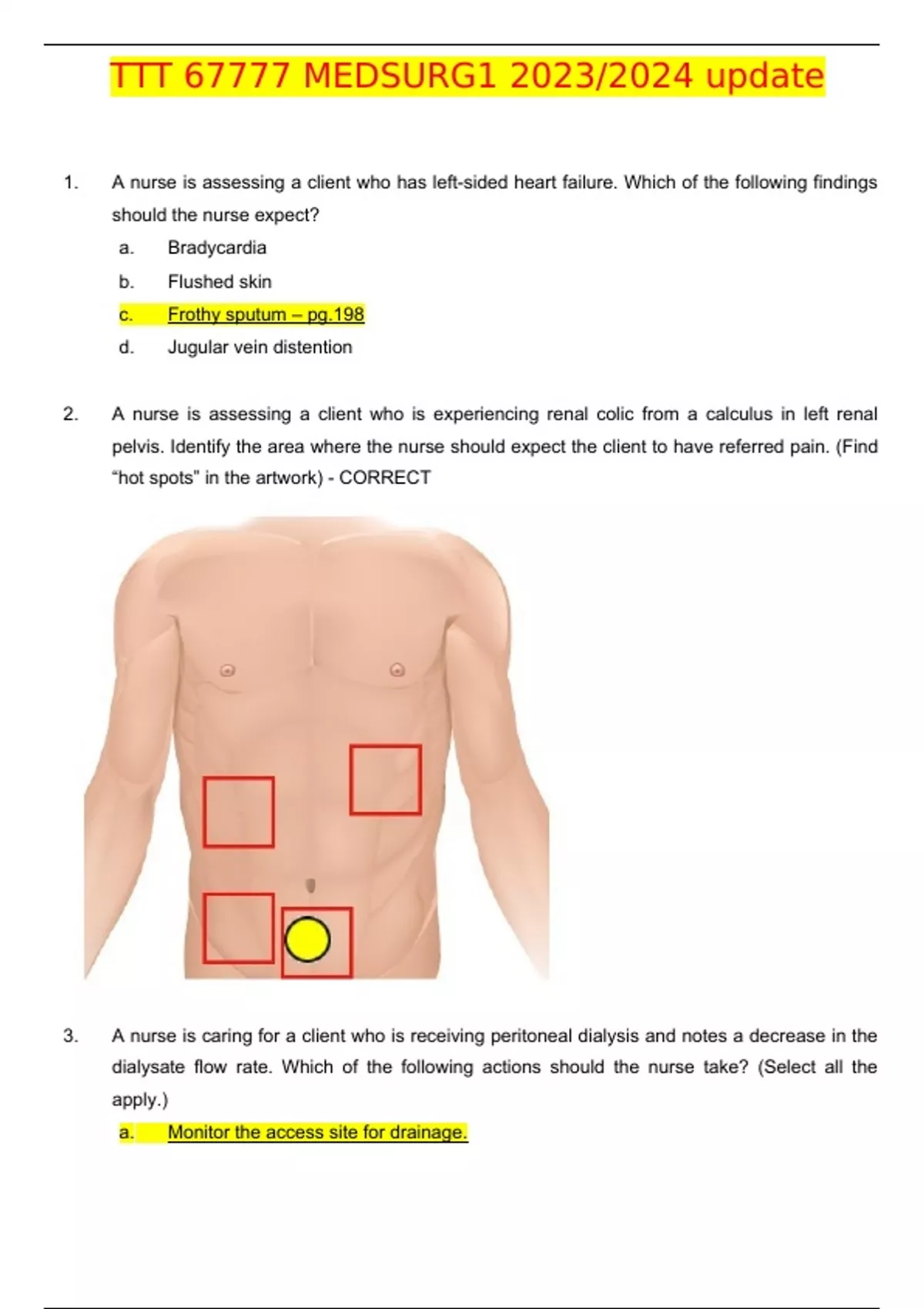 Exam (elaborations) TTT 67777 Med Surg 2 Exam_2023/2024_ California State University 2 Exam (elaborations) TTT 67777 MedSurg 3 Questions & Answers 2023/2024 update | Rated A+ 3 Exam (elaborations) TTT 67777 MEDSURG1 Questions & Answers 2023/2024 update