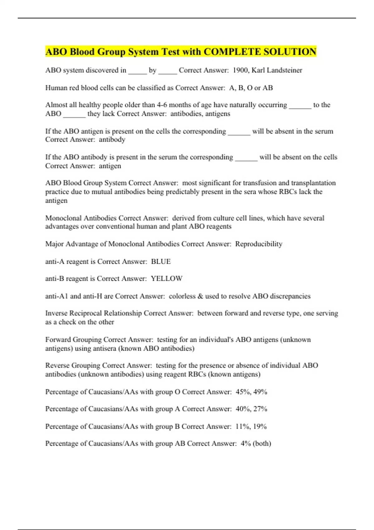 ABO Blood Group System Test with COMPLETE SOLUTION