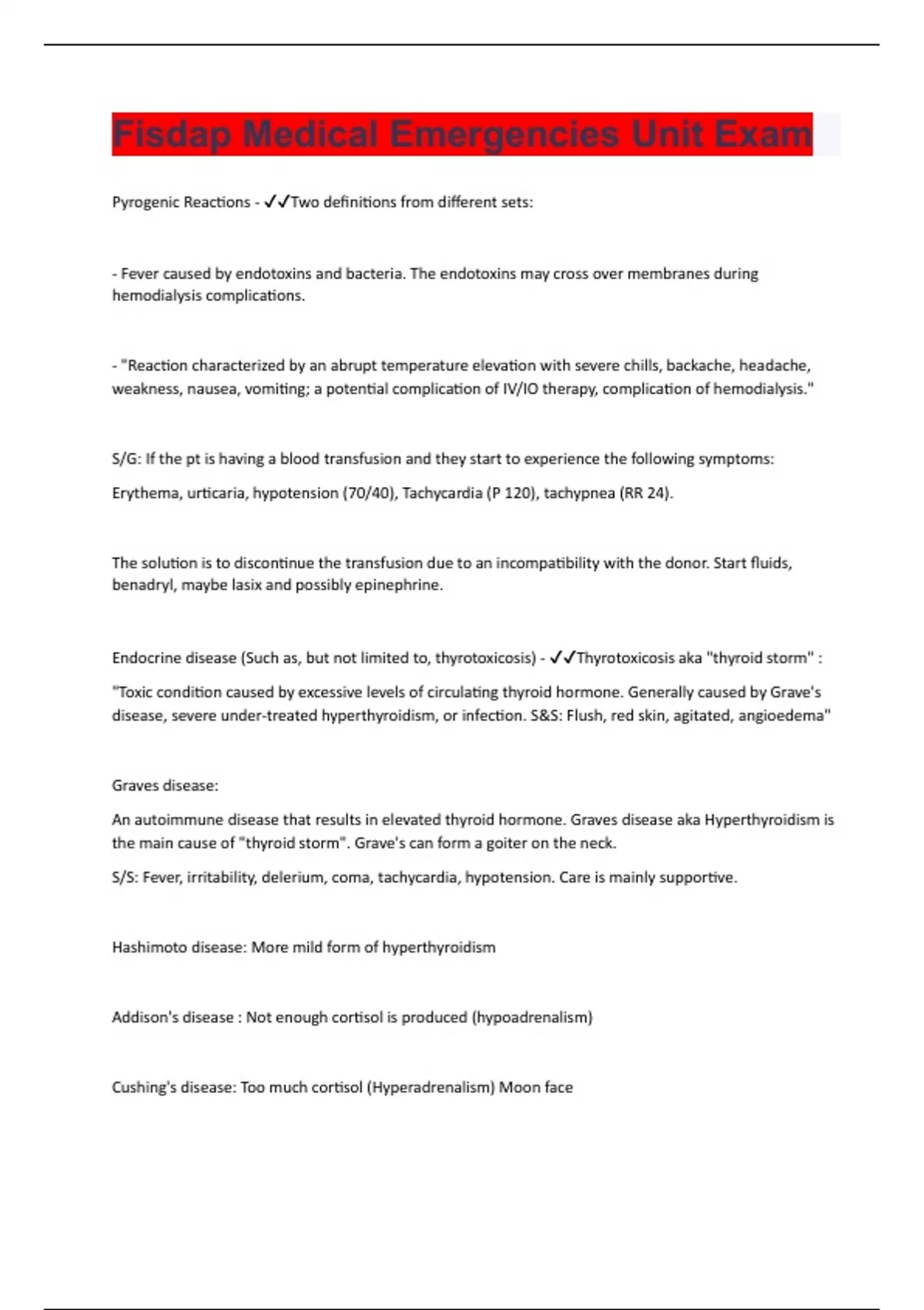 Bundle for Fisdap Unit Exams compilation | everything you need | verified