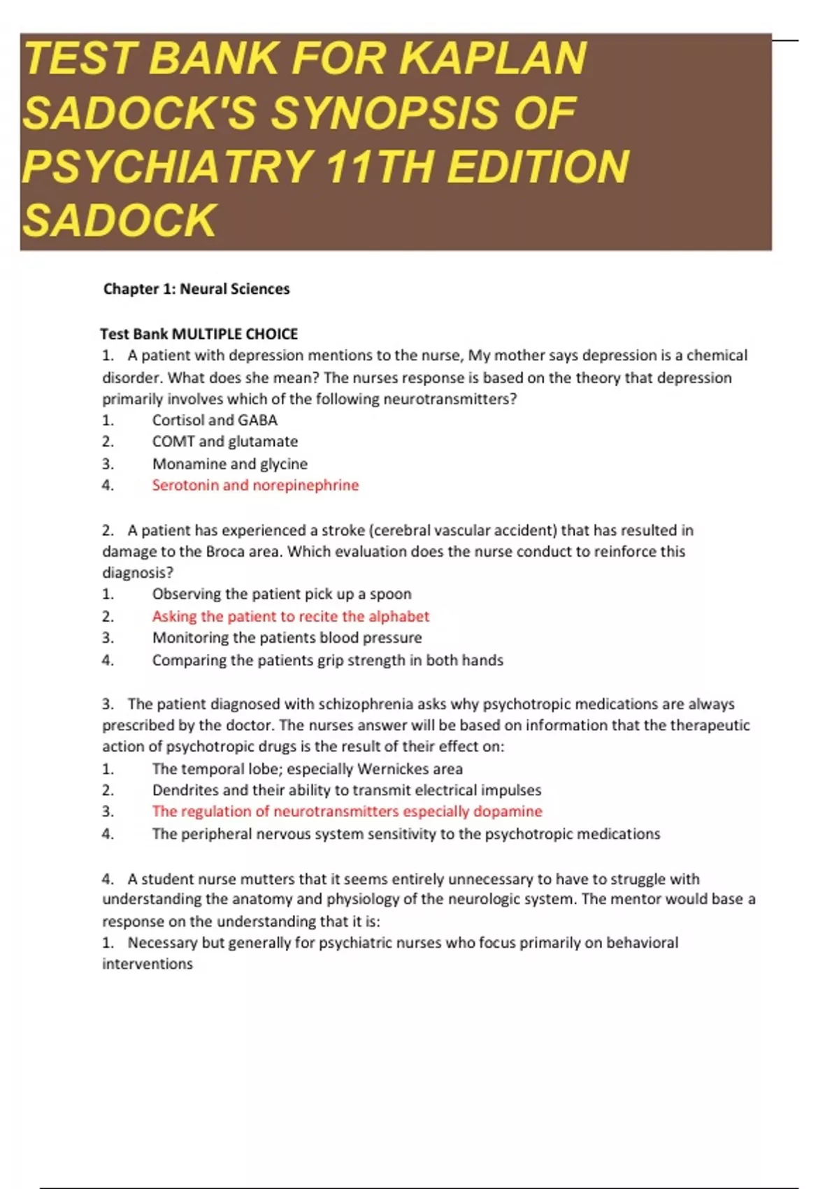 BUNDLE!! Test Bank For Kaplan & Sadock’s Synopsis of Psychiatry 10th, 11th and 12th Edition By Robert Boland; Marica Verdiun; Pedro Ruiz Complete Guide