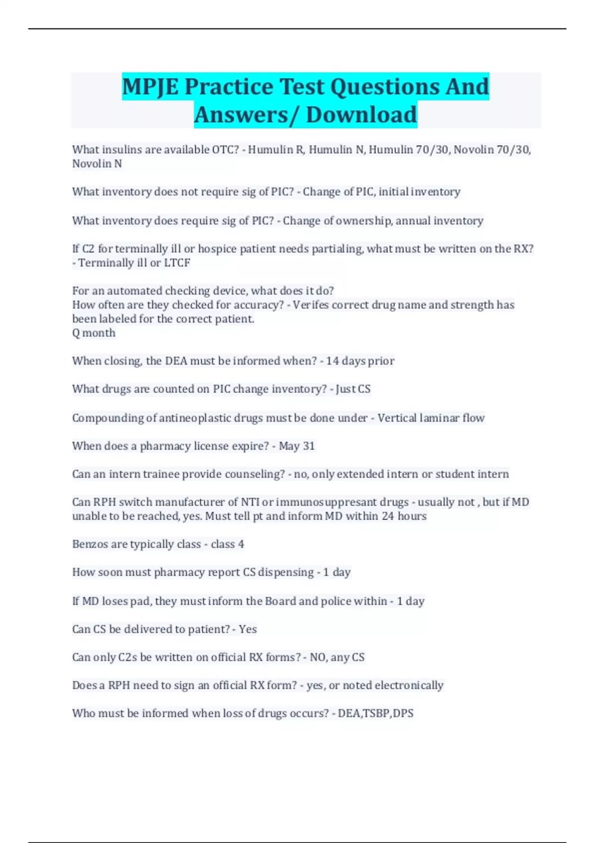 MPJE Practice Test/ APhA Federal Law Questions And Answers Already Passed.