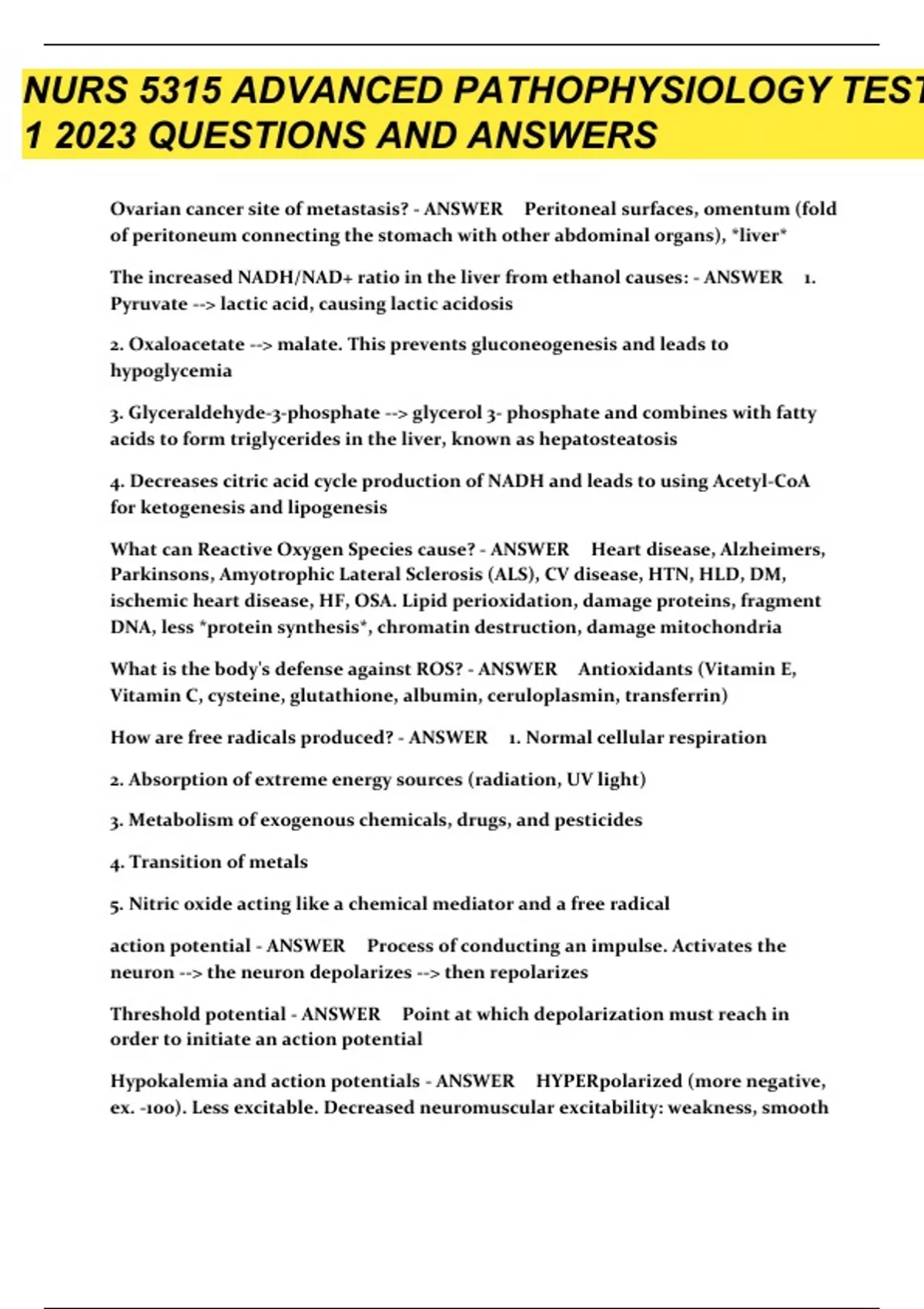 NURS 5315 EXAMS & STUDY GUIDE, Case study ALL MODULES COMPLETE