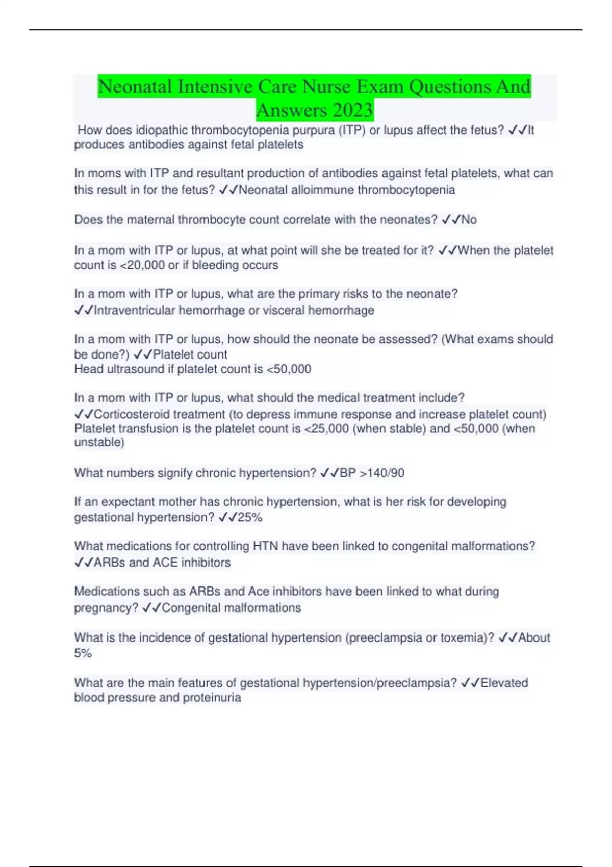 Neonatal Intensive Care ( NICU) Complete Bundle With Verified Questions And Answers 2023 Quiz NICU Nursing | Complete Questions And Answers With Verified Solutions 2023 Neonatal Intensive Care Pharm Test | Questions And Answers 2023 Neonatal Intensive Care Nursing Certification (Watson) Questions And Answers 2023 NICU RN A V1 Complete Questions