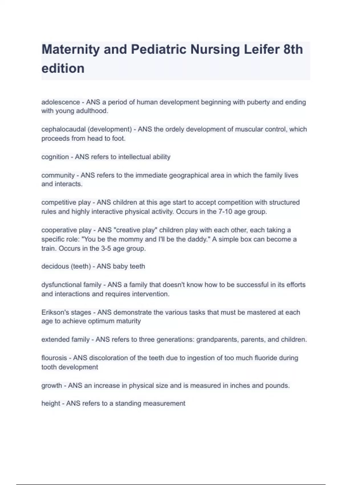 Intro. to Maternity & Pediatric Nursing: Ch. 3 Fetal Development VERIFIED Chapter 12, 13 Leifer VERIFIED Chapter 3, 4, 5 Leifer VERIFIED Introduction to Maternity and Pediatric Nursing Edition 8, Leifer, Chapter 1 - The Past, Present, and Future Maternity and pedi ch 2,3,4,5,6,7, review VERIFIED