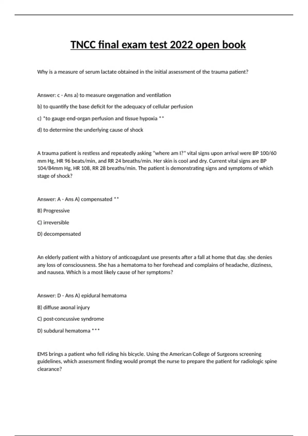 TNCC final exam test 2022 open book