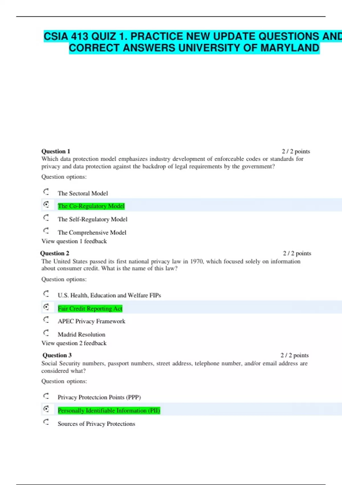 CSIA 413 COMBINATION OF COURSE QUIZZES 1 ,2(PART 1 AND 2), 3, 4 IN A FOLDER 2023 UNIVERSITY OF MARYLAND