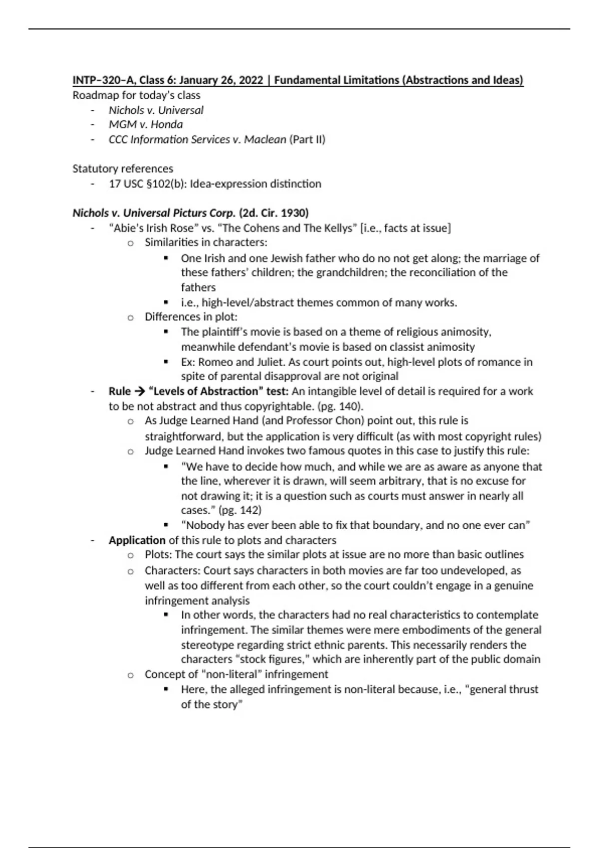 INTP-320 Copyright Law Class Notes (28 total)