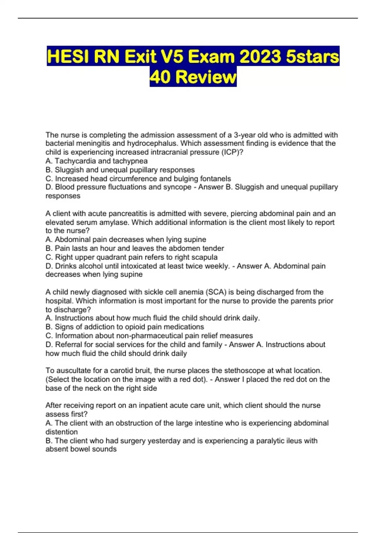 EXIT HESI EXAM QUESTIONS AND ANSWERS @ 2023