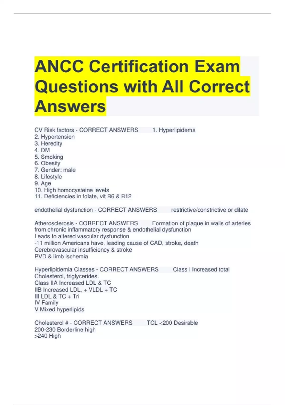 ANCC Certification Chapter 7 Test Questions and Answers All Correct 2 Exam (elaborations) ANCC Certification Prep Chapter 8 Test Questions and Correct Answers 3 Exam (elaborations) ANCC Med-Surg Certification Exam Questions with Correct Answers 4 Exam (elaborations) ANCC Certification PMHNP Chapter 7 Exam Questions and Correct Answers 5 Exam (e