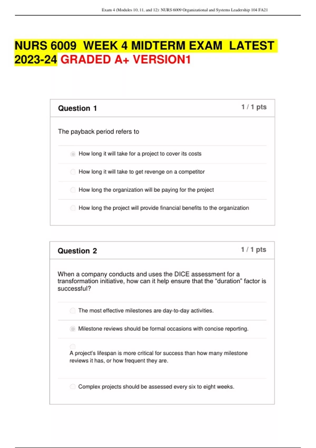 NURS 6009 WEEK 4 MIDTERM EXAM LATEST 2023-24 GRADED A+ VERSION1