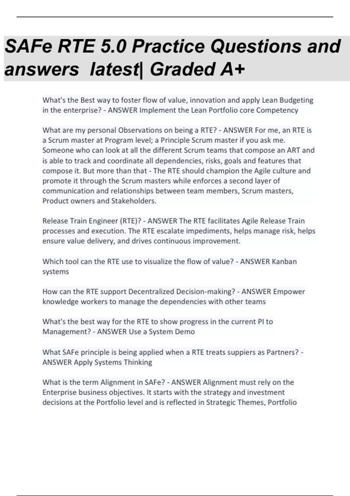 BUNDLE for SAFe RTE 5.0 2022/2023 with complete solutions already graded A