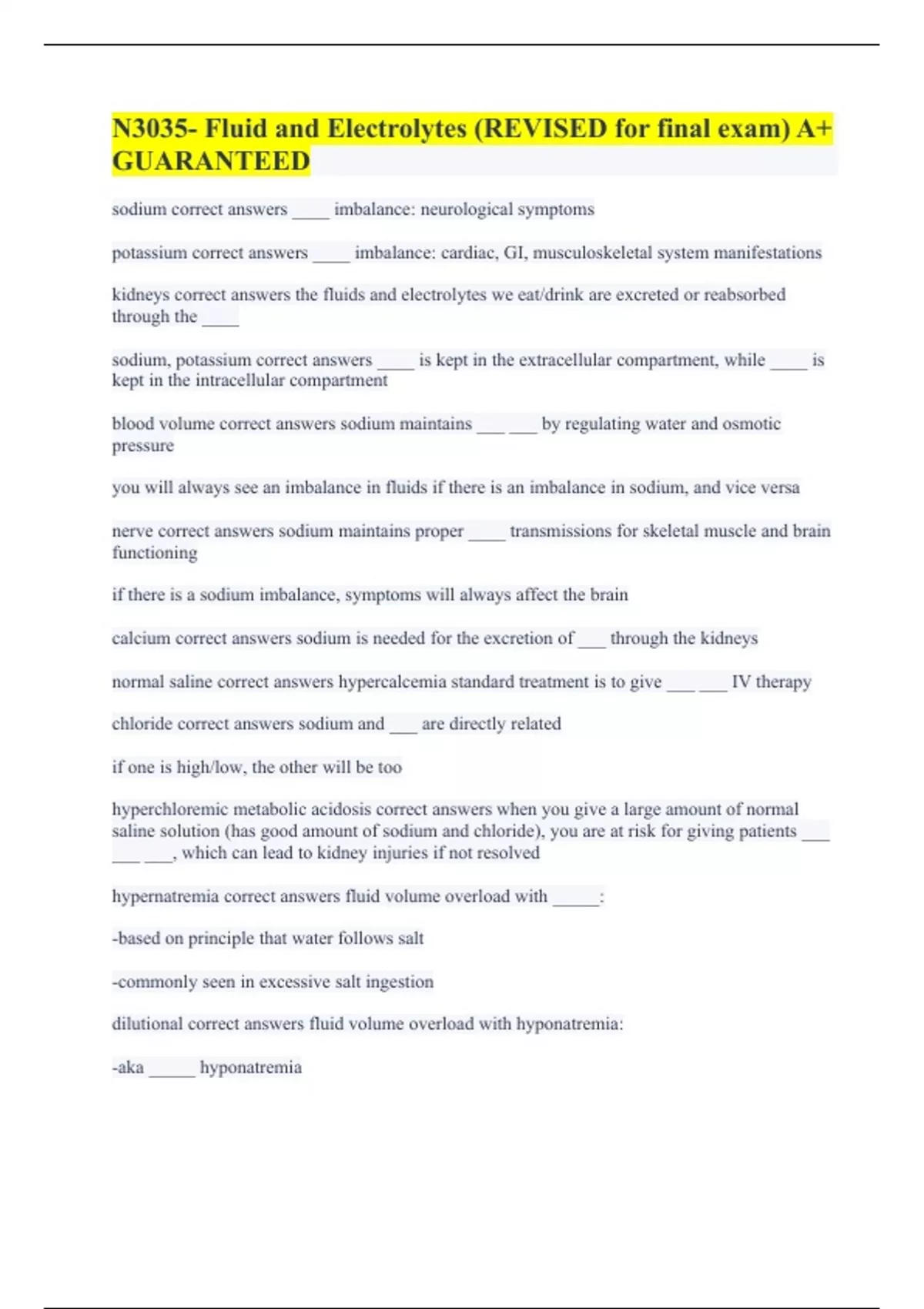 N3035- Fluid and Electrolytes (REVISED for final exam) Fully certified with 100% correct solutions