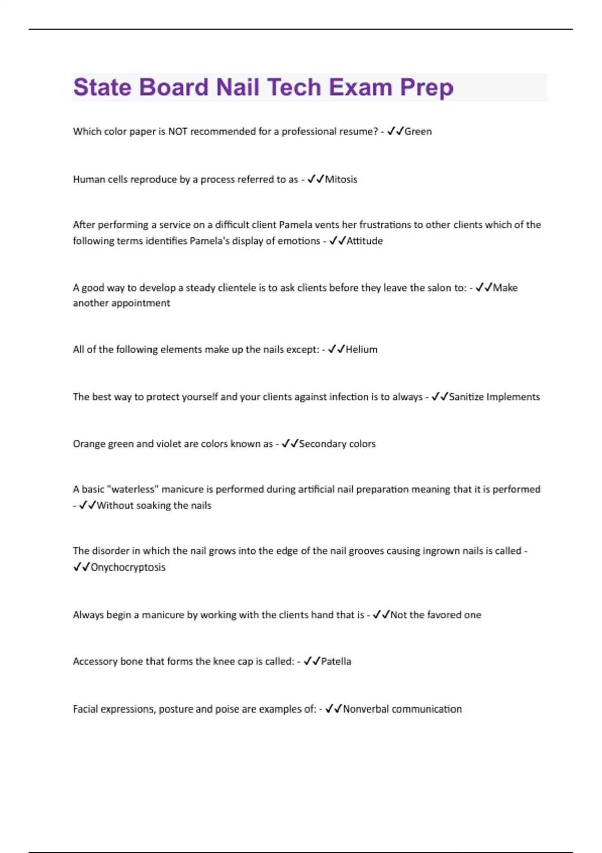 State Board Nail Tech Exam Prep| 98 Questions and Answers (A+ Solution guide)