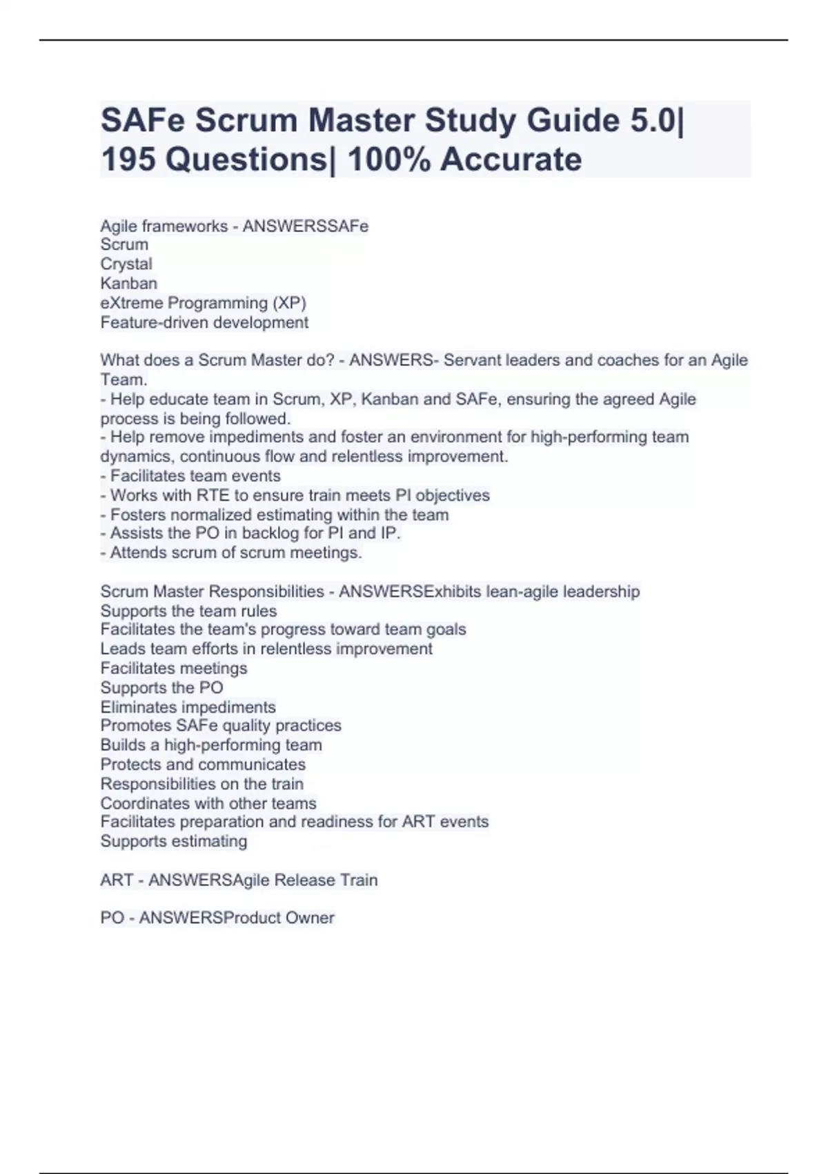 SAFe Scrum Master Certification 5.0 Correct Questions & Answer COMPLETE EXAM BUNDLE 2023
