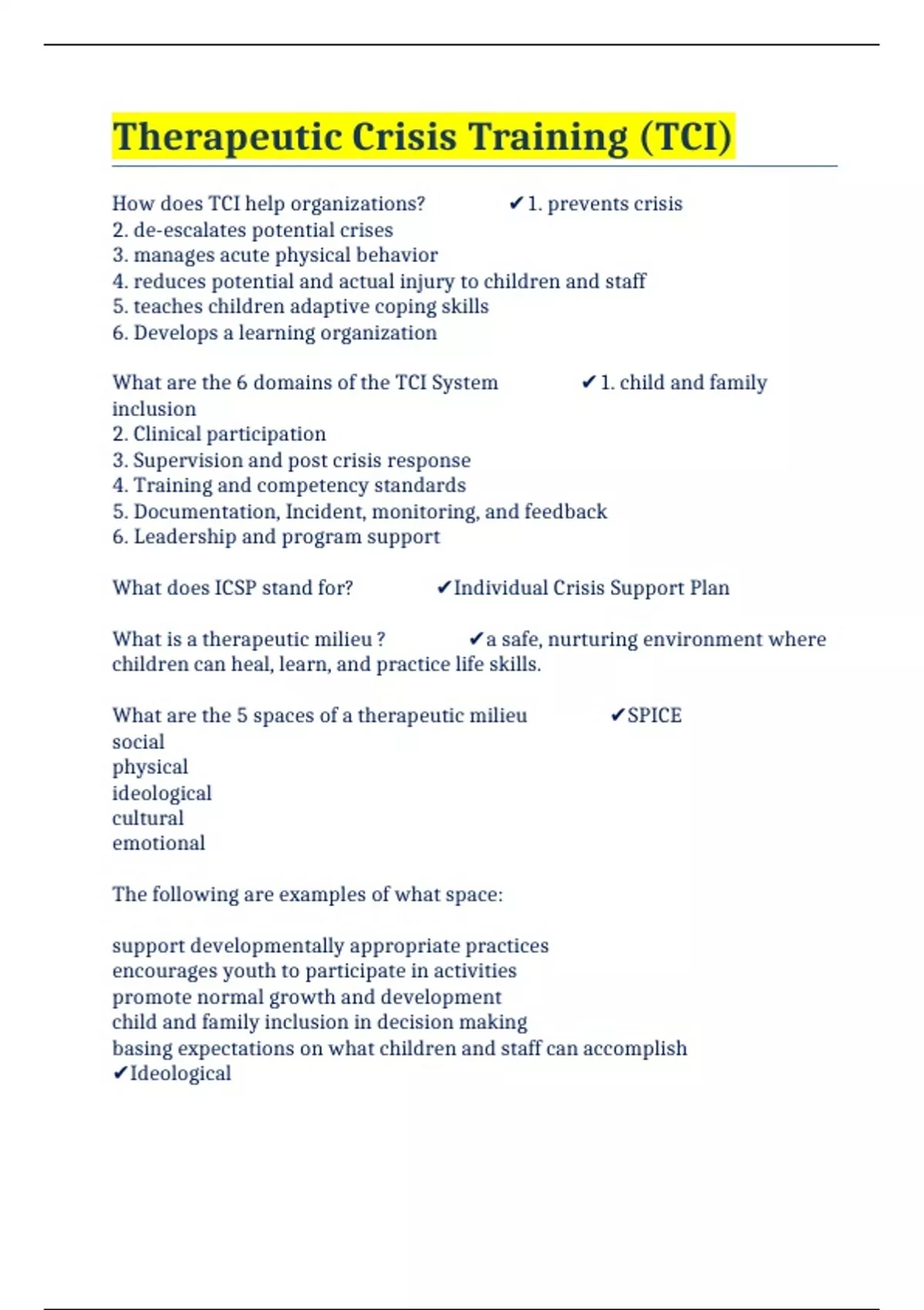 PACKAGE::: TCI TRAINING TESTS (THERAPEUTIC CRISIS TRAINING)