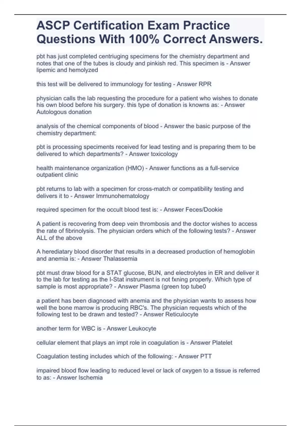 ASCP Certification Exam Practice Questions With 100% Correct Answers.,MLT ASCP Practice Test Questions board practice With Correct Solutions.,ASCP MLS EXAM ALREADY GRADED A+,Complete BOC: ASCP prep Quizbank With Complete Solutions.,MLT ASCP Practice Questions And Answers.,MLS ASCP board of Certification (1-100)With Complete Answers.,ASCP BOC Pract