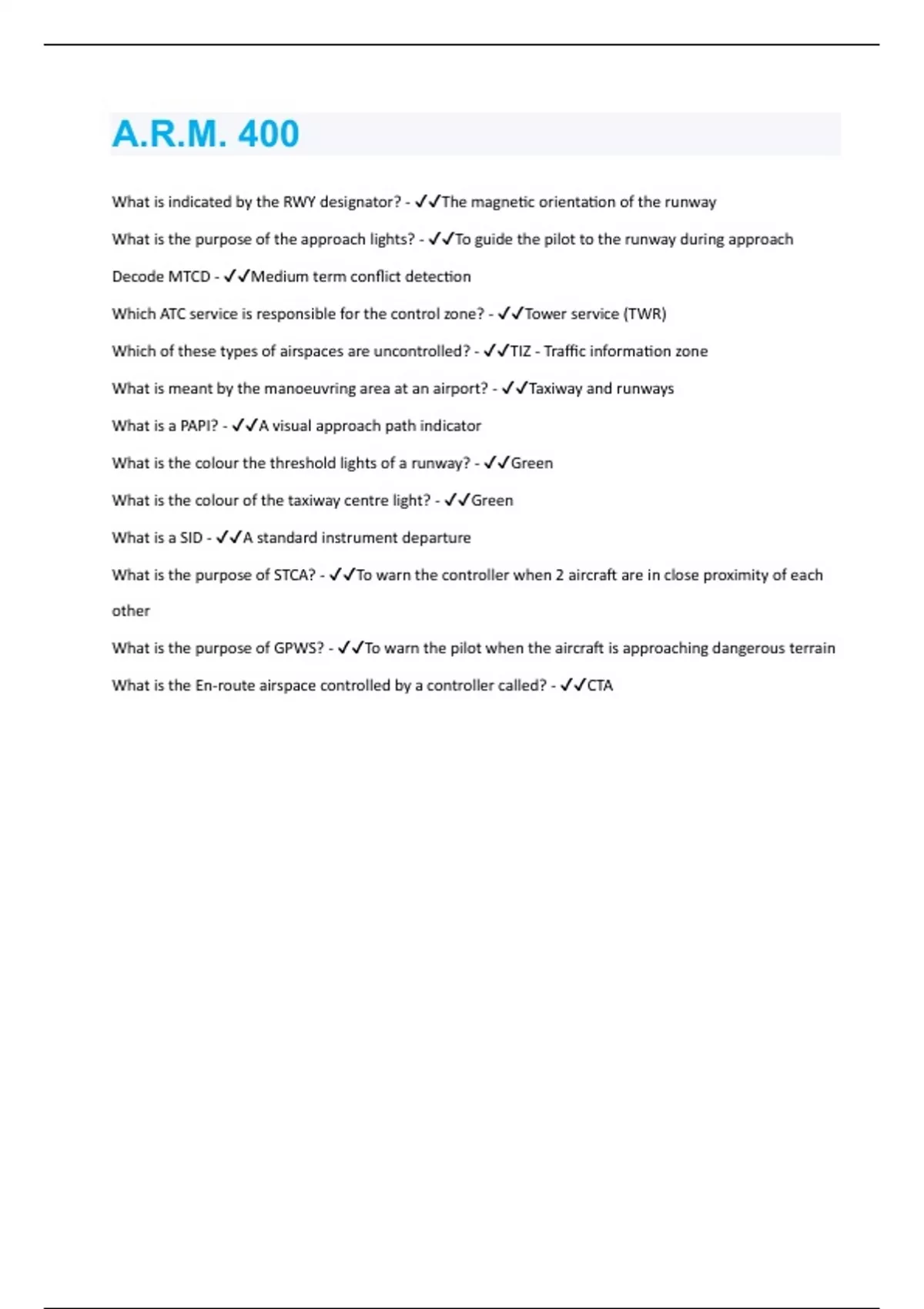 A.R.M. 400 | Questions with 100% correct Answers | Verified