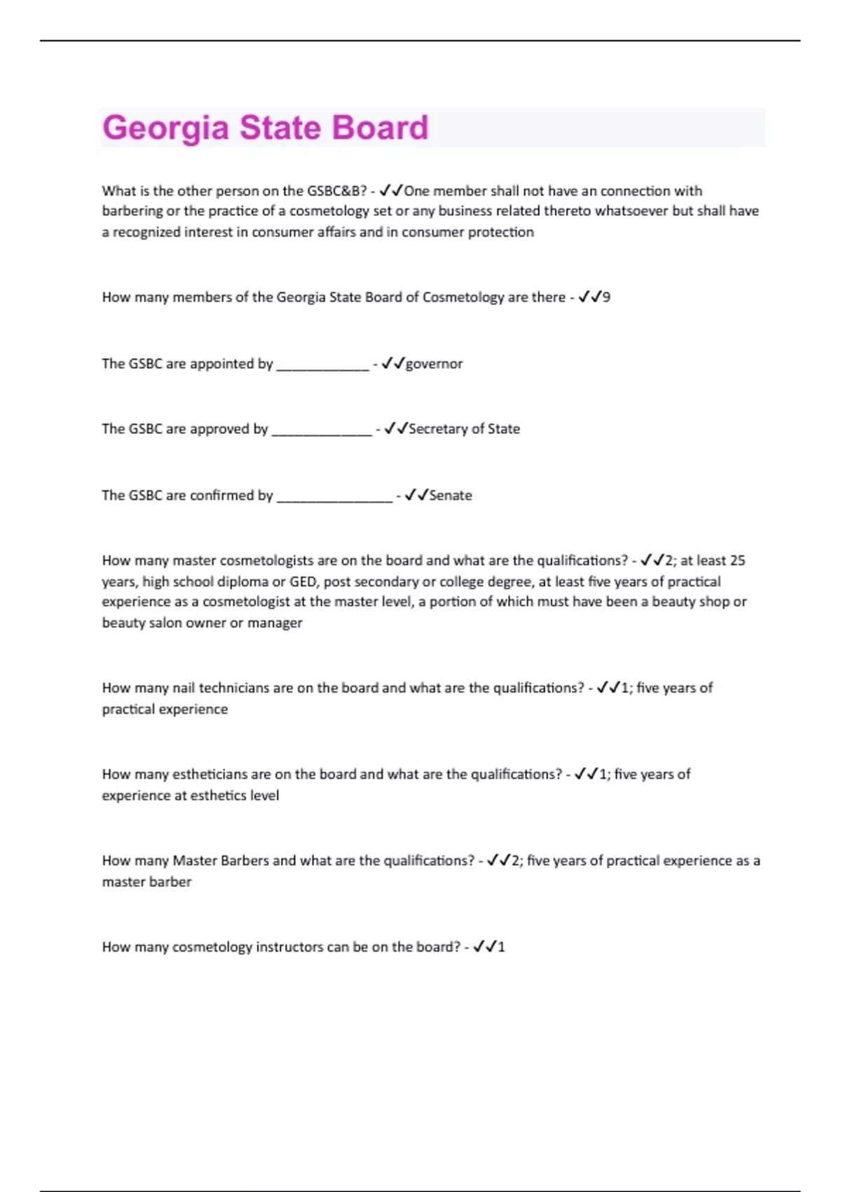Georgia State Board | Questions with 100 % Correct Answers | Verified