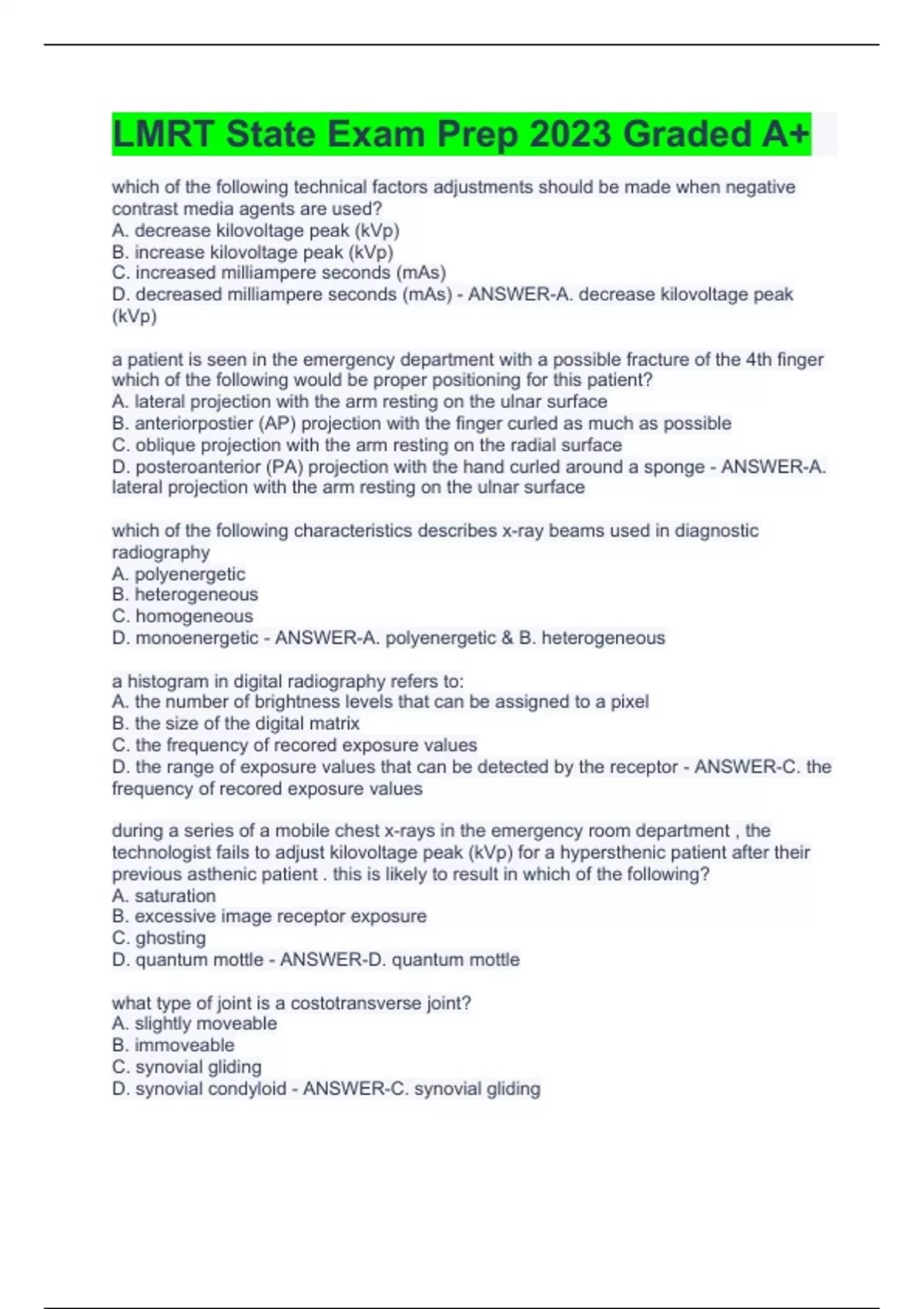 LMRT State Exam Prep 2023 Graded A+ Lmrt State Exam Review 2023 Solved 100% Correct LMRT State (Actual) Exam Graded A+