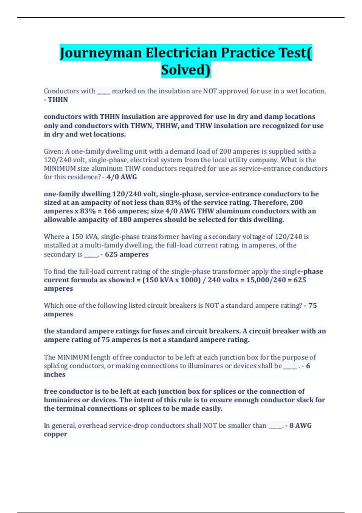ELECTRICIANS PRACTICE EXAM( SOLVED)