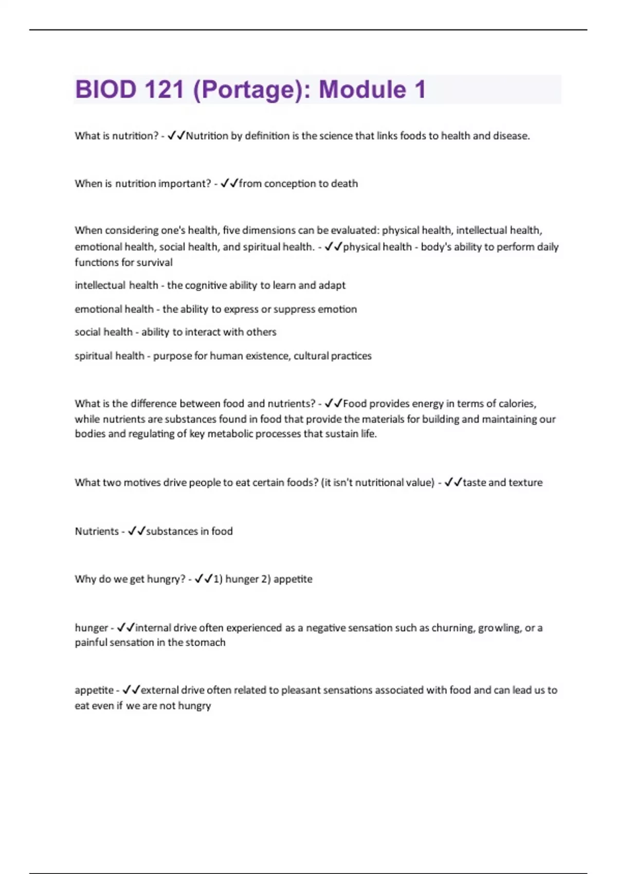 BIOD 121 - Essentials in Nutrition Module 1 Questions and Answers with complete solution