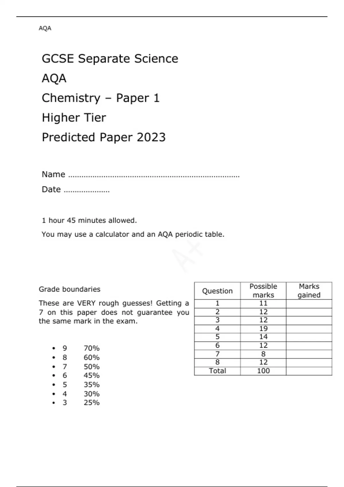AQA GCSE Separate Science Chemistry Paper 1 and 2 Higher Tier Predicted Paper 2023 Questions and Answers