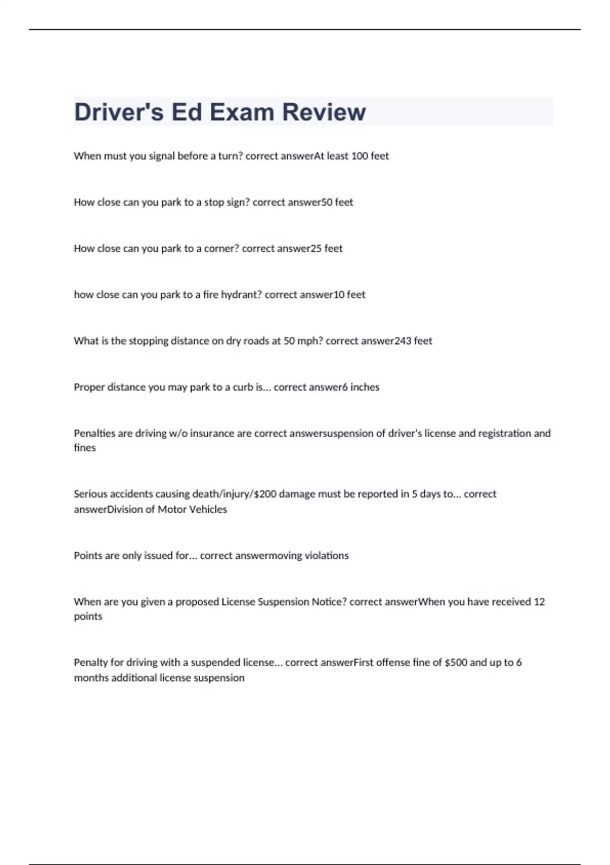 Drivers Ed BUNDLED 1 exam 2023 with 100% correct answers