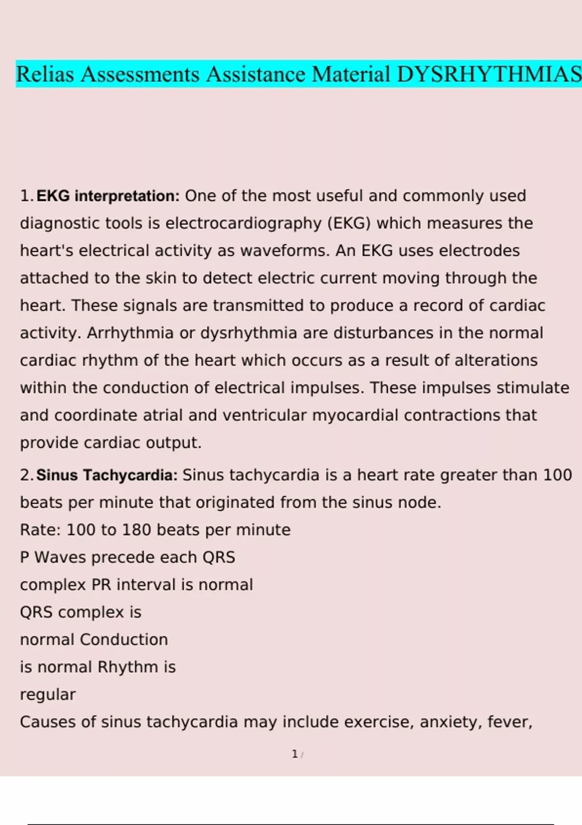 Relias Assessments Assistance Material DYSRHYTHMIAS. questions verified with 100% correct answers