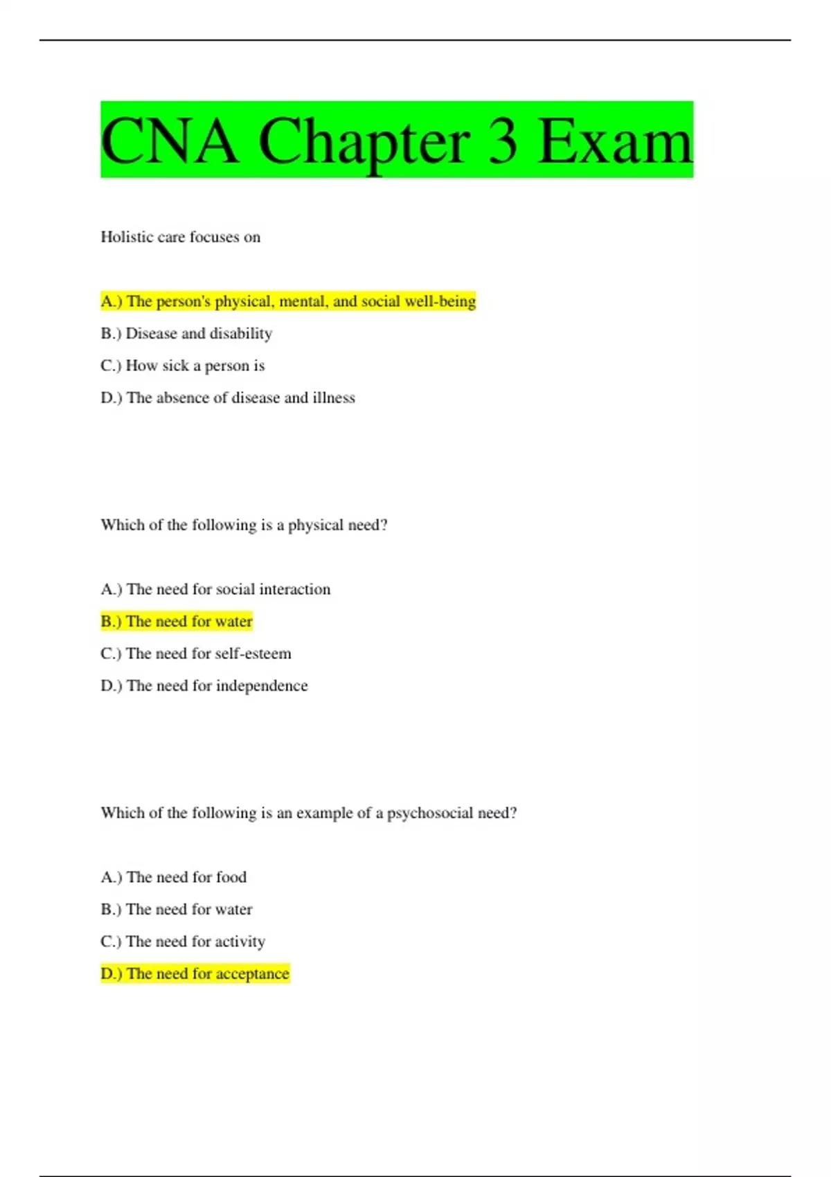 (Complete) CNA Chapter 3 Exam Questions And Answers (Latest 2024/2025| Verified Answers