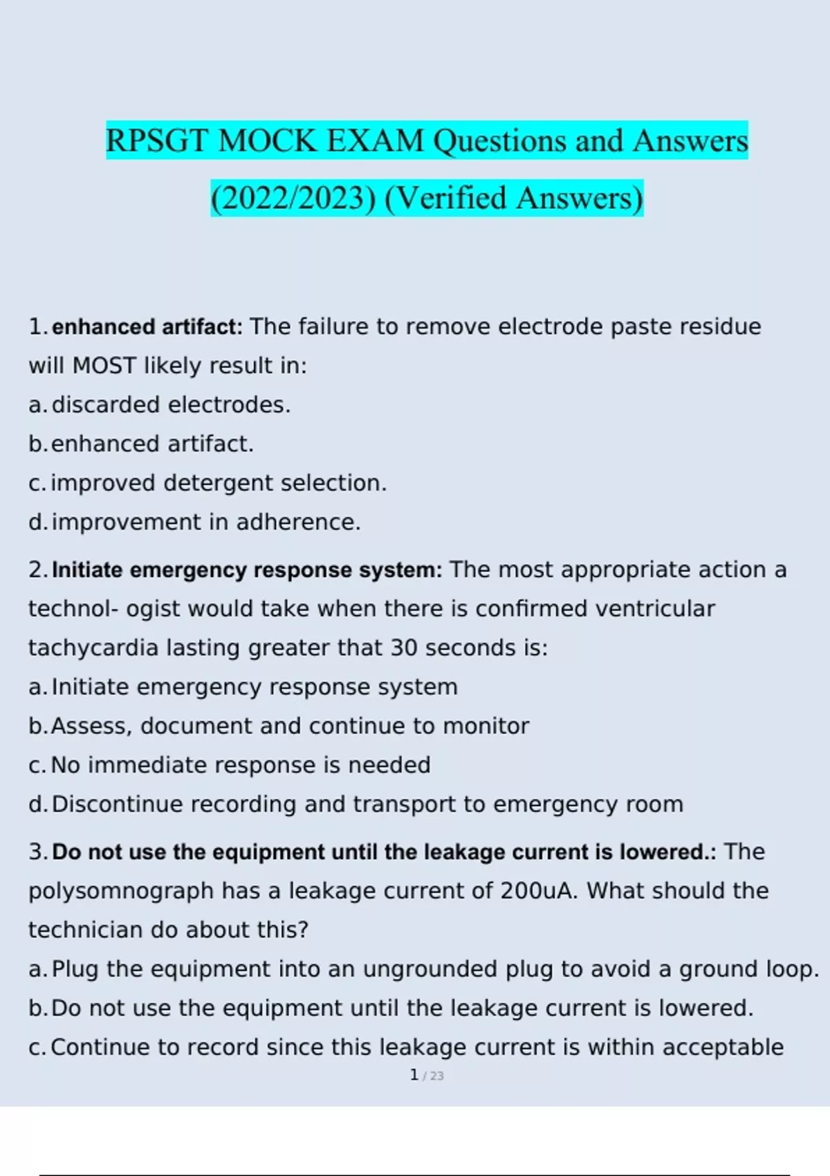RPSGT Study Guide Practice Test 2023 | BUNDLE PACK SOLUTION Questions and Answers | 100% Verified Answers by Expert