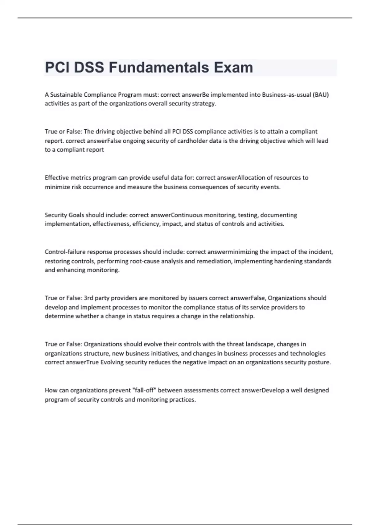 BUNDLE for PCI DSS FUNDAMENTALS EXAMS QUESTIONS WITH VERIFIED CORRECT SOLUTIONS/A+ GRADE/
