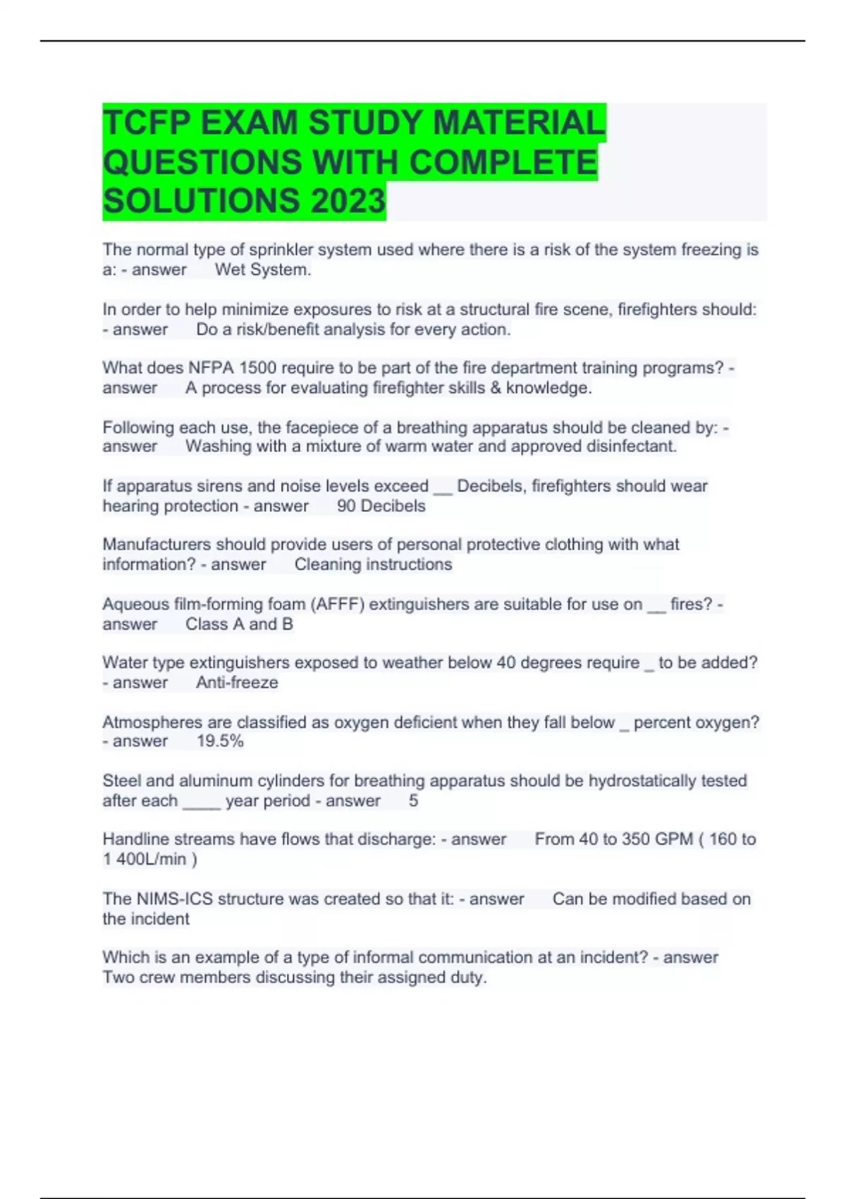Exam (elaborations) TCFP Driver Op Questions and Answers 2023 Exam (elaborations) TCFP Field Examiner Course Questions with complete Answers 2023 Exam (elaborations) TCFP Firefighter I/II Chapters 14-17 Test Questions and Answers 2023 Exam (elaborations) TCFP PADO Formulas Questions with complete solutions 2023 Exam (elaborations) TCFP FF