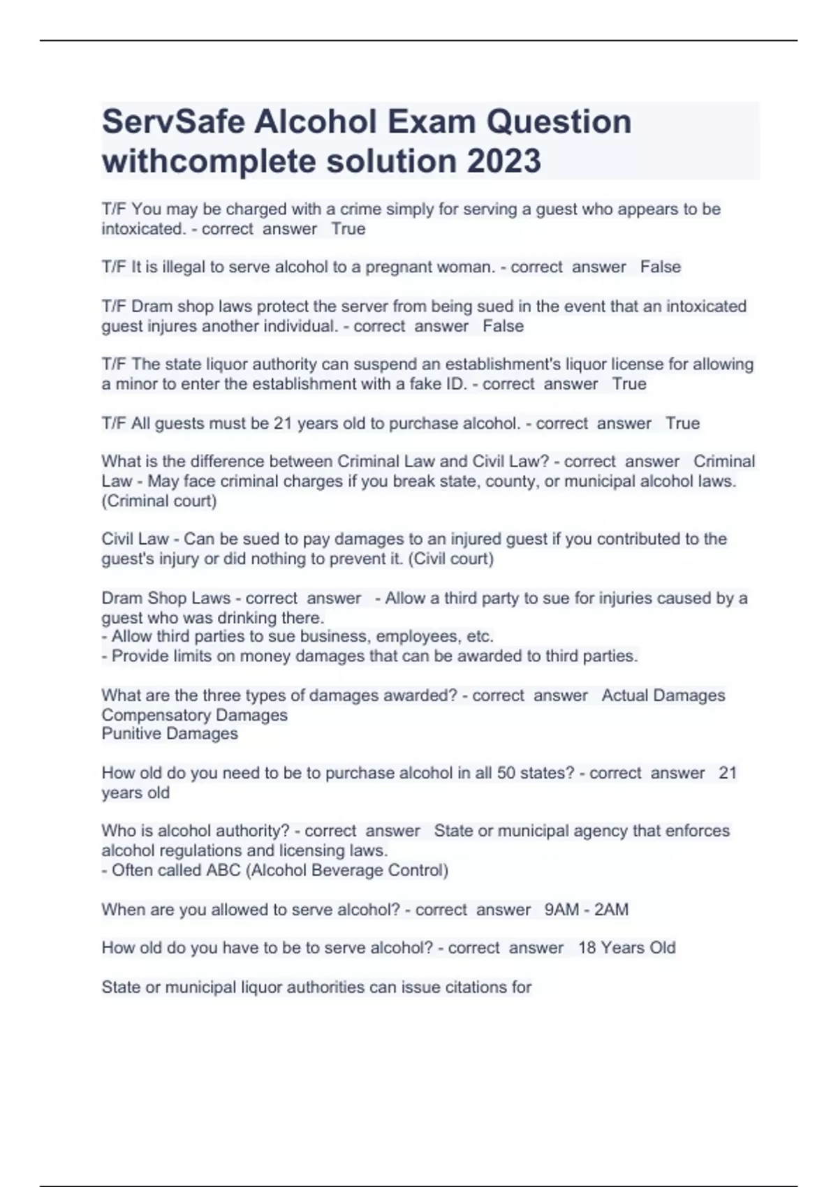 BUNDLE OF ALCOHOL CERTIFICATE QUESTIONS AND ANSWER 2023