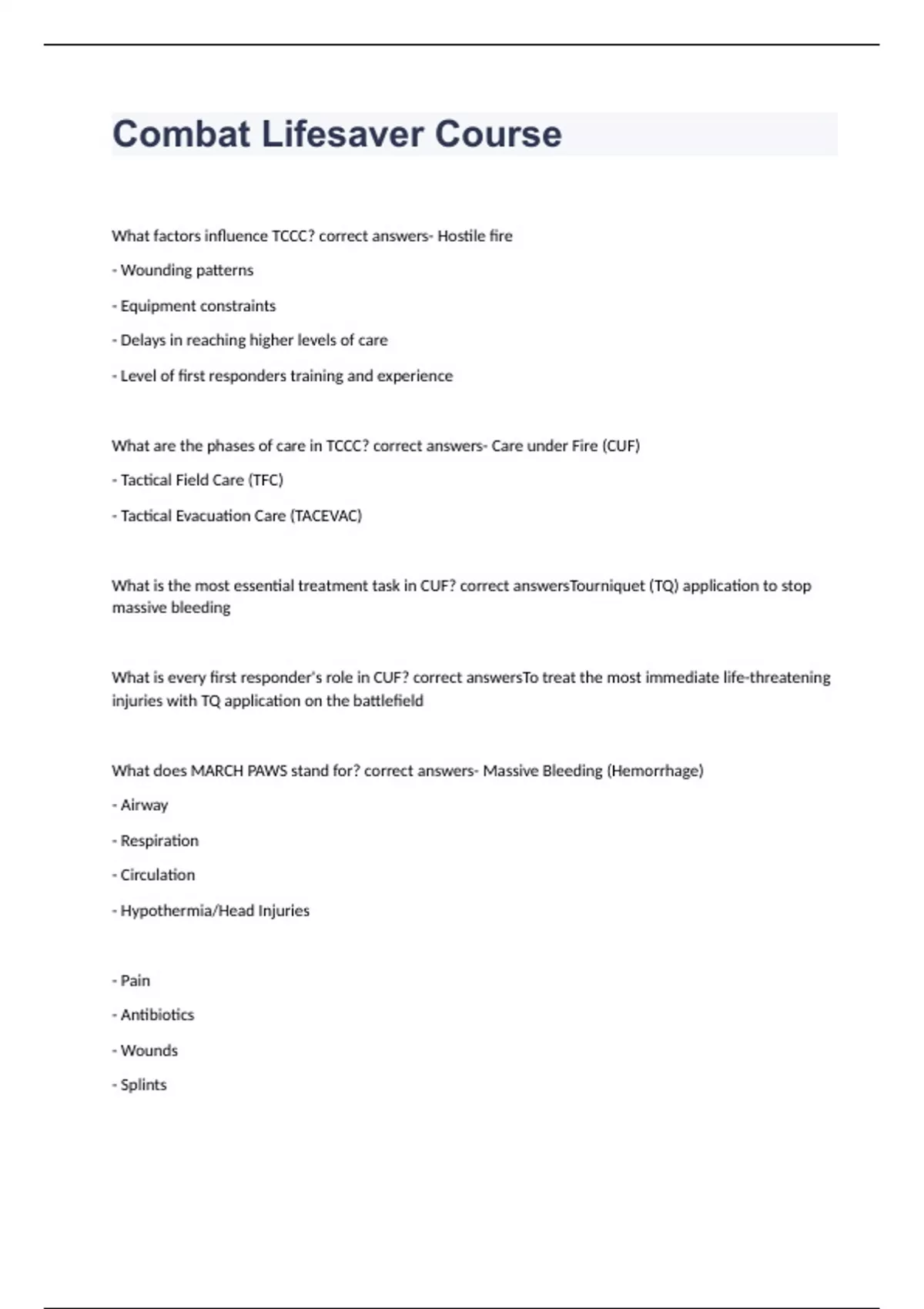 Combat Life Saver Test WITH COMPLETE SOLUTIONS