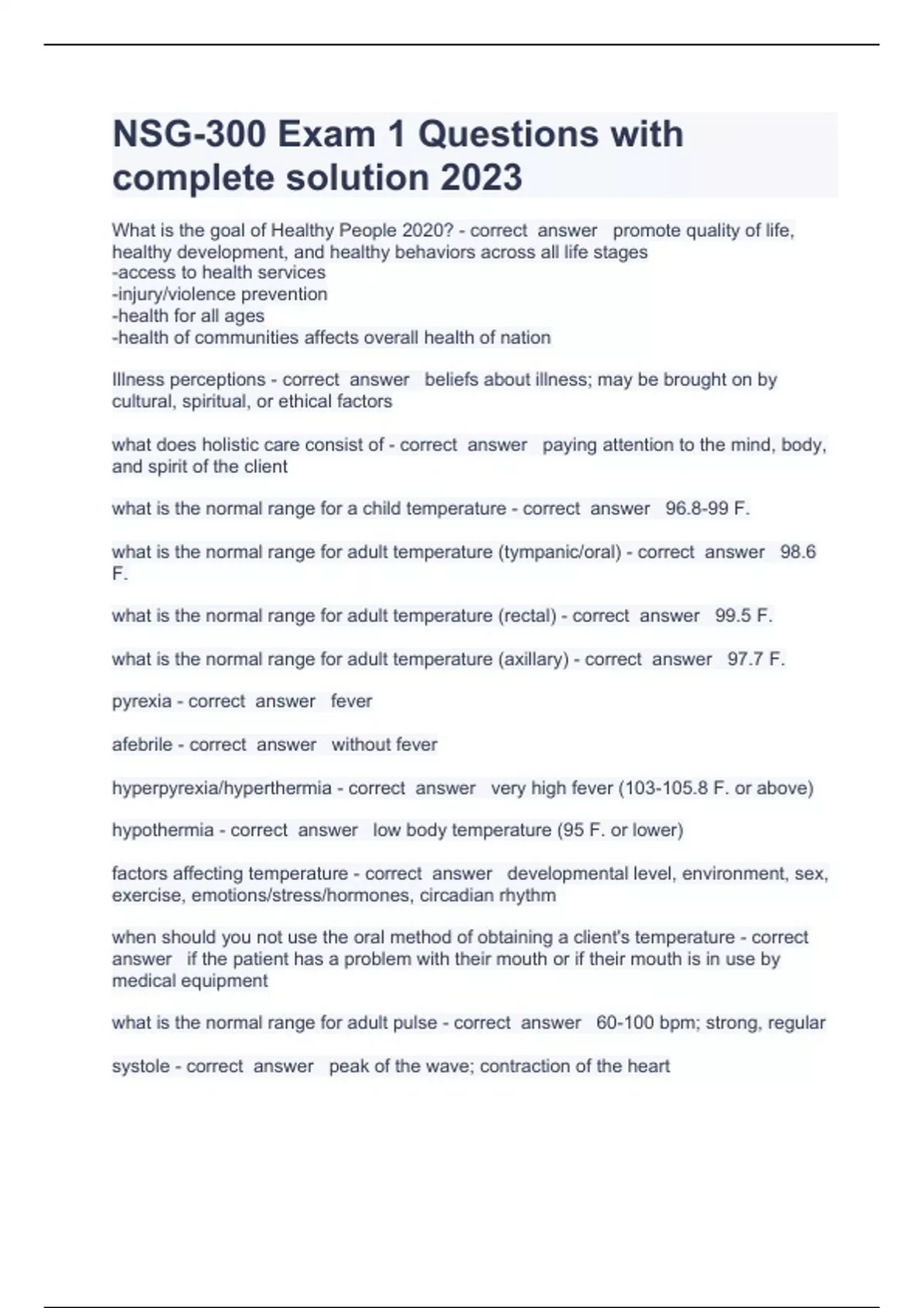 NSG 106 - Quiz 3 - Tissue Integrity & Wound Care Question and answers already passed 2023 Exam (elaborations) NSG 310 Exam 2 Question and answers 100% correct 2023 Exam (elaborations) NSG-434 Exam 2 Questions with complete solution 2023 Exam (elaborations) NSG 3180 UNIT 1-4: Kahoot Questions and answer rated A 2023 Exam (elaborations) Herz