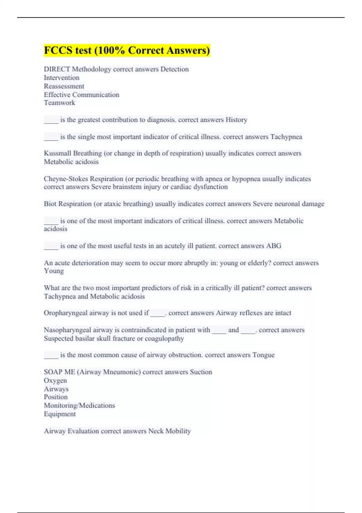 FCCS Cert (Fundamental Critical Care Support) 100% Correct.