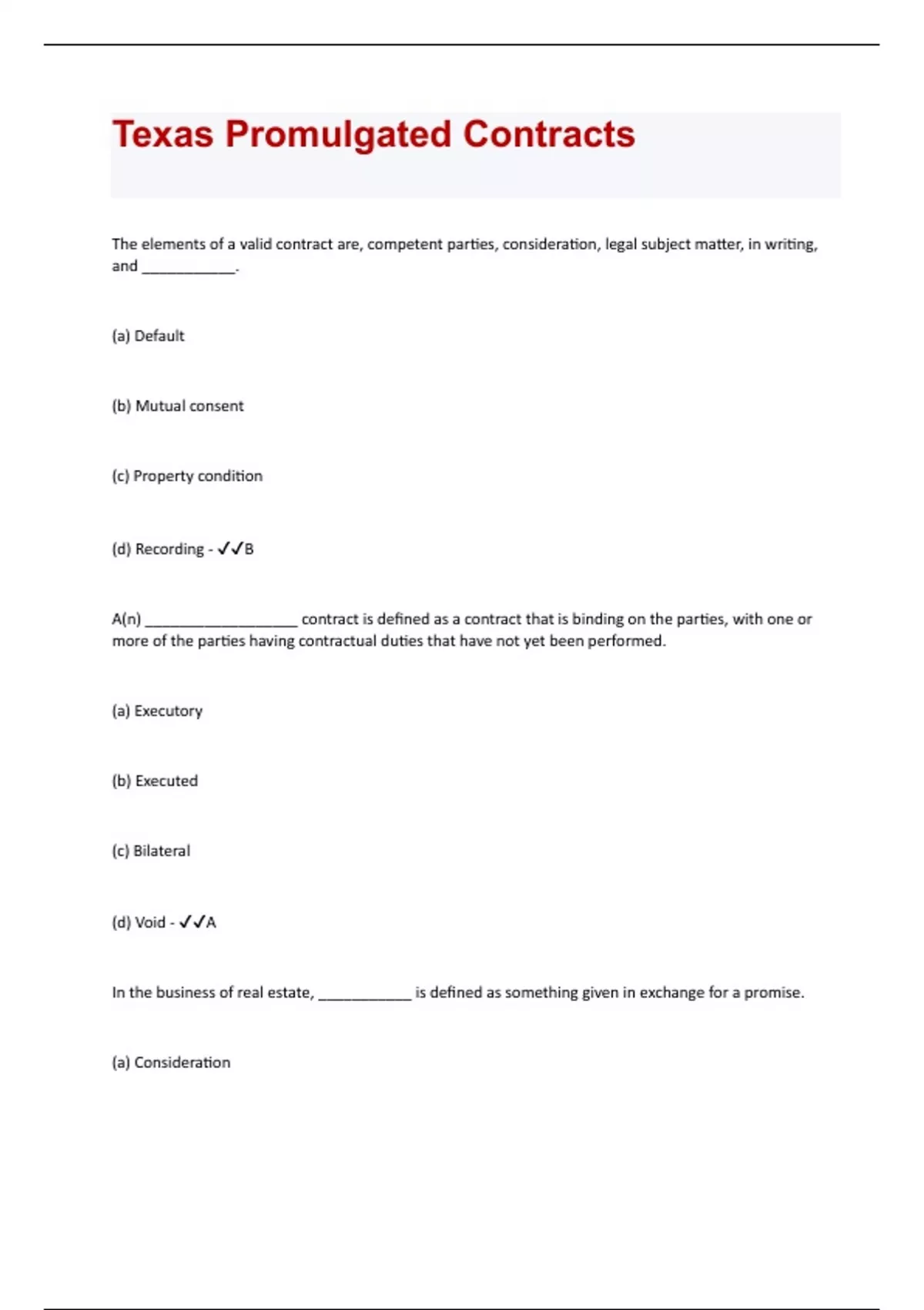 Texas Promulgated Contract Bundled Exams with complete solution | everything you need