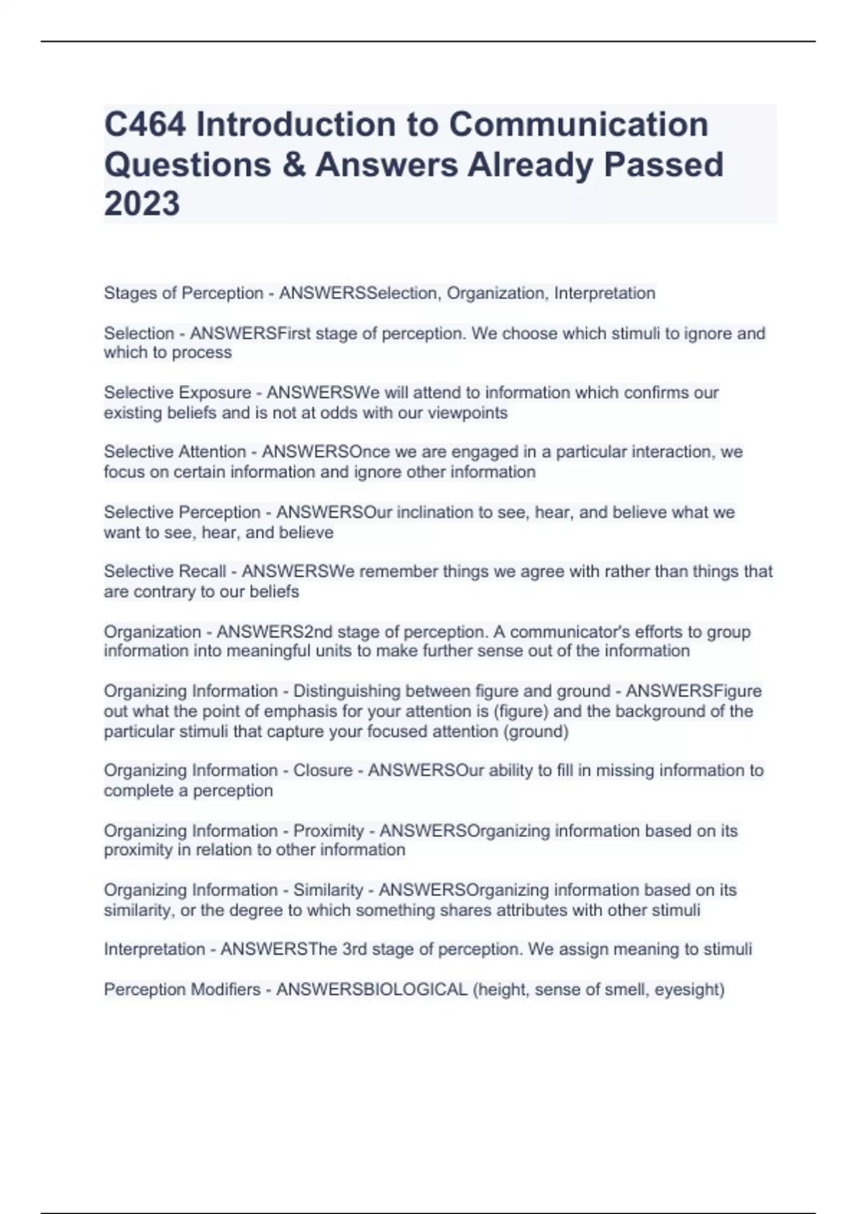 C464 Introduction to Communication Questions & Answers Already Passed 2023