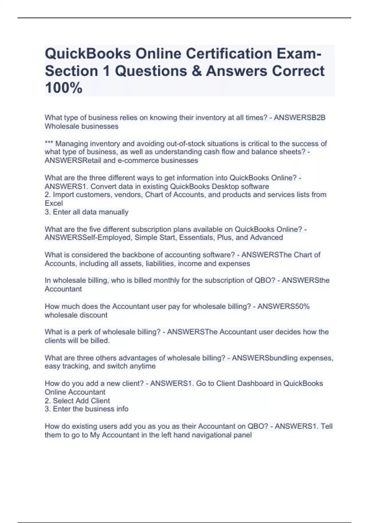 Quickbooks Online Certification Correct Questions & Answers(RATED A)